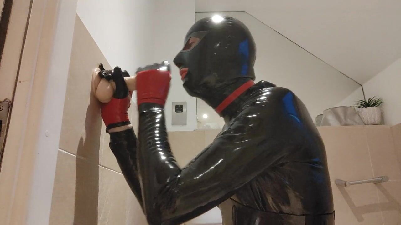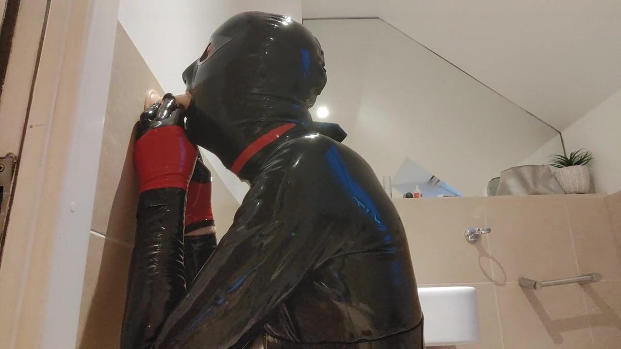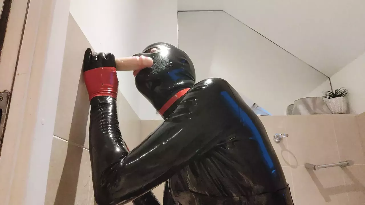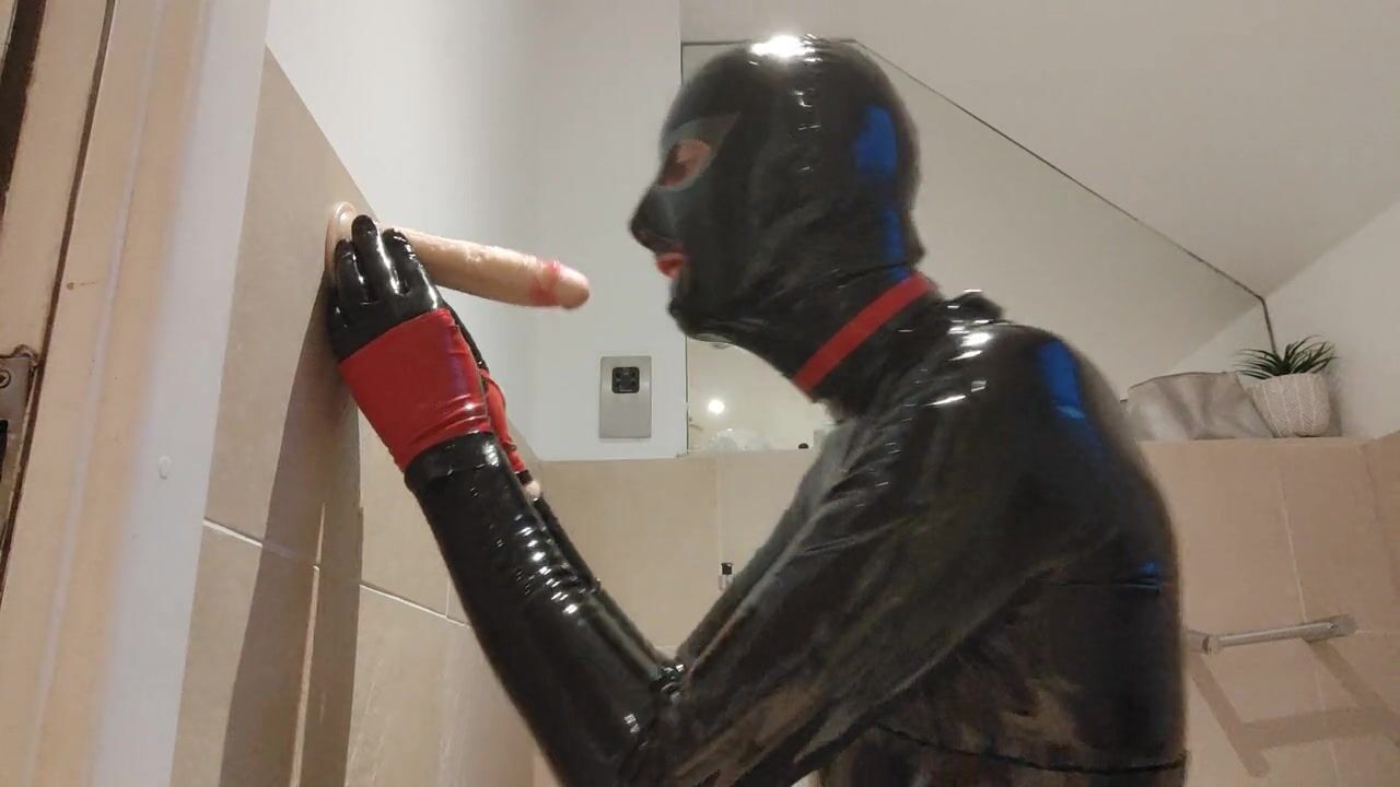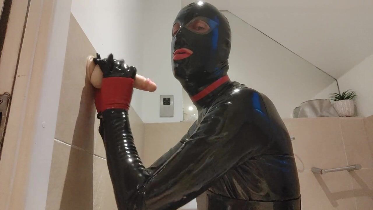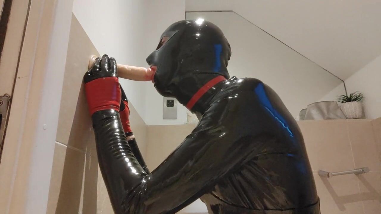 Dildo sucking latex sissy slut, Alice Latexy (latexdesires)