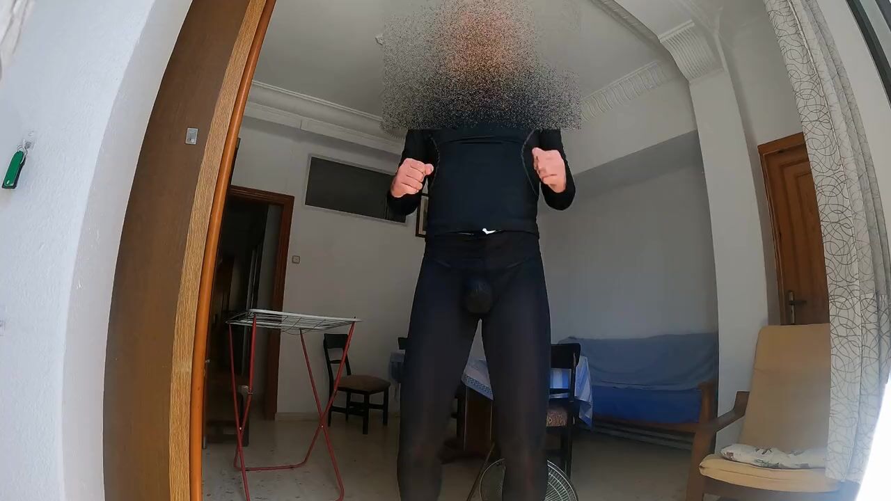 The longest/nicest cumshot of my life (17 shots!) after a horny spandex workout session!