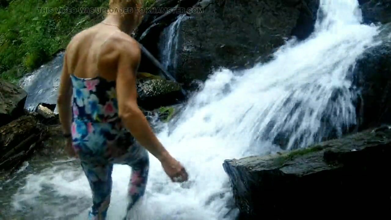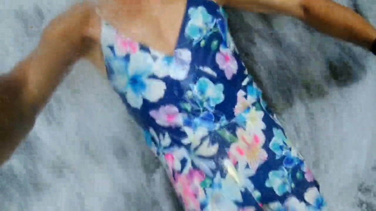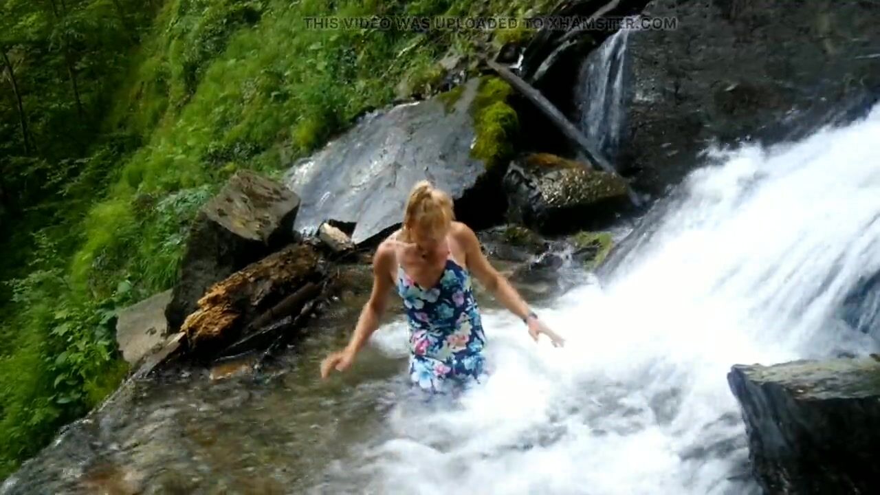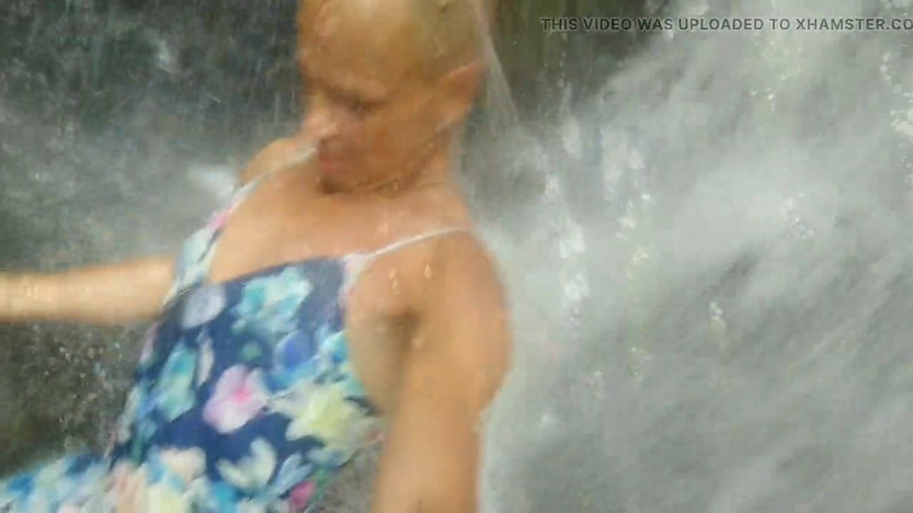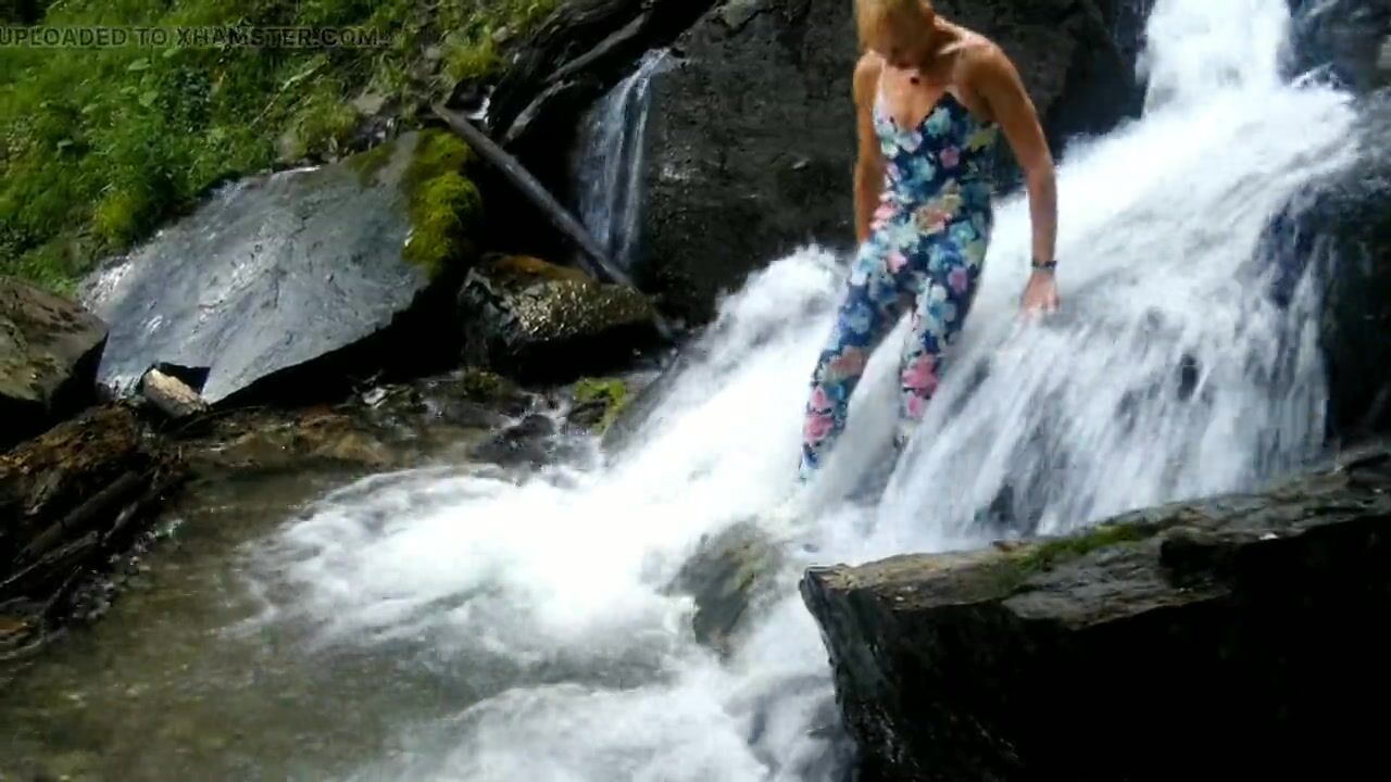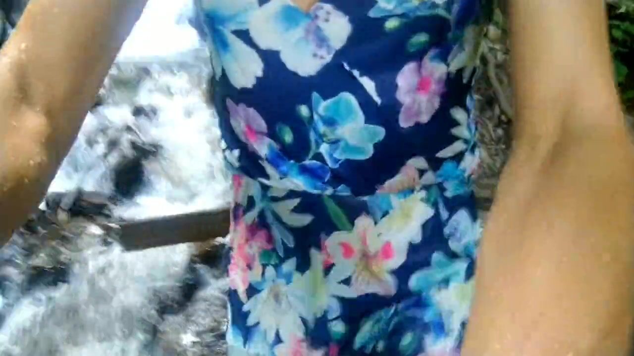 Alexa Cosmic swimming in beautiful waterfall wearing colorful combi dress...