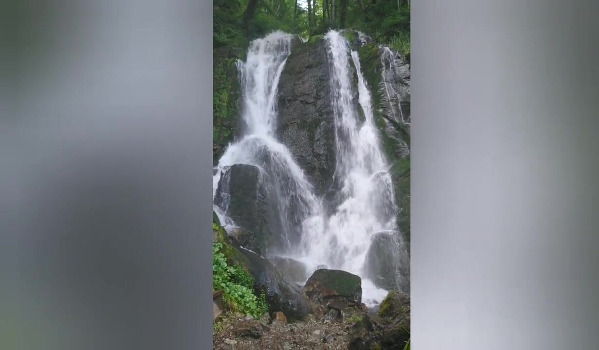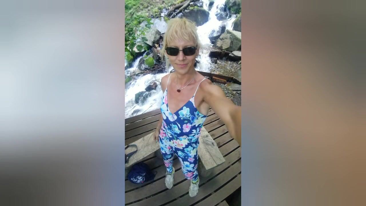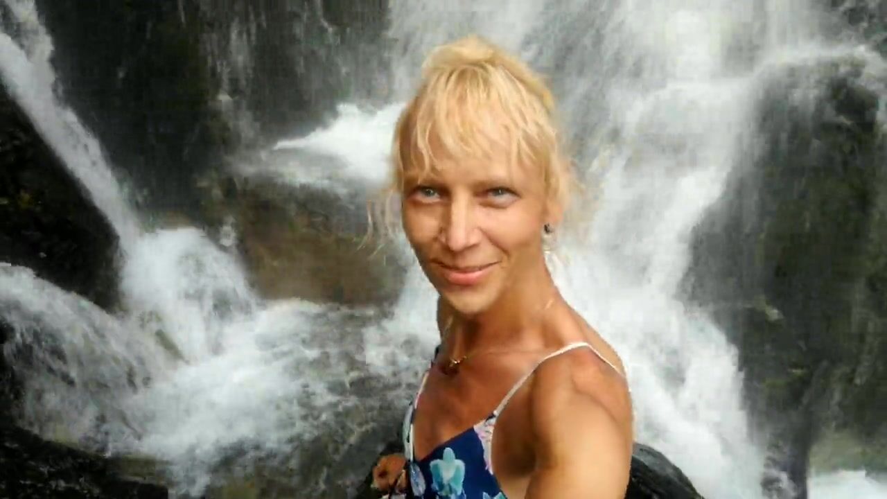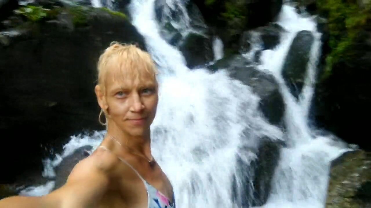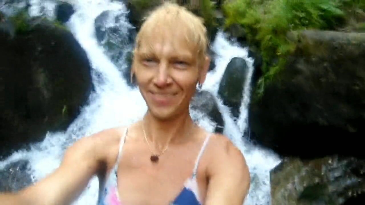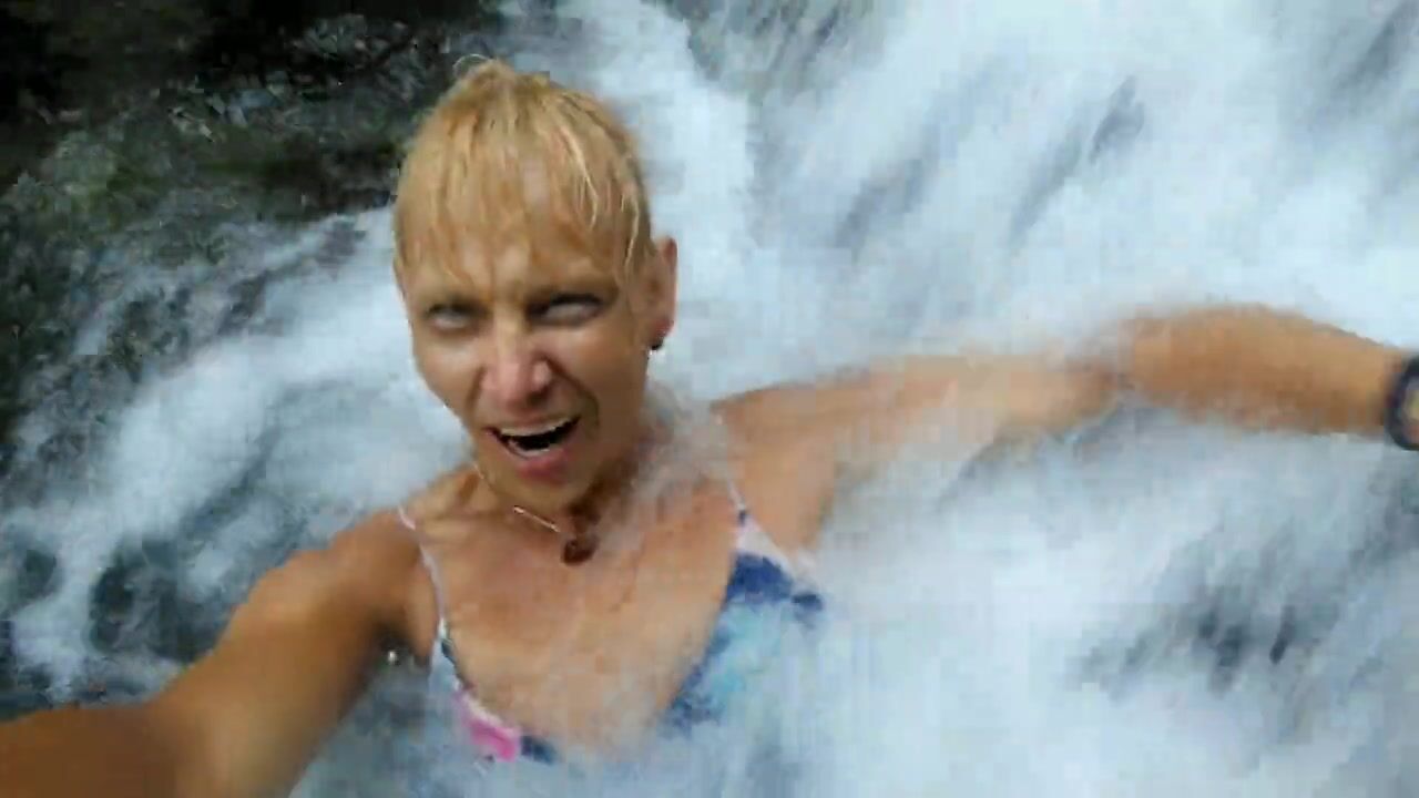 Alexa Cosmic swimming in beautiful waterfall wearing colorful combi dress...
