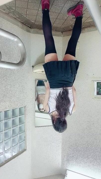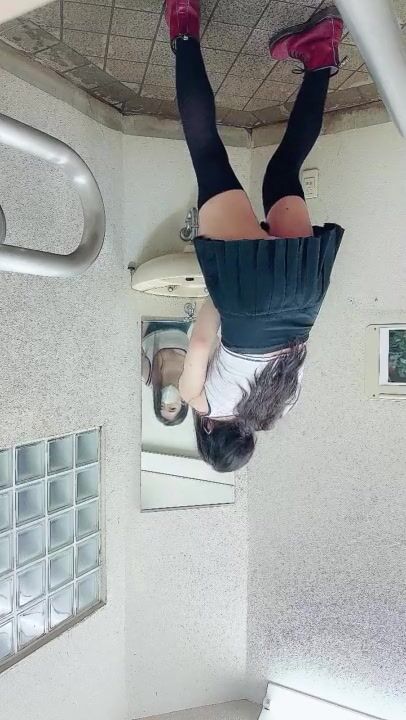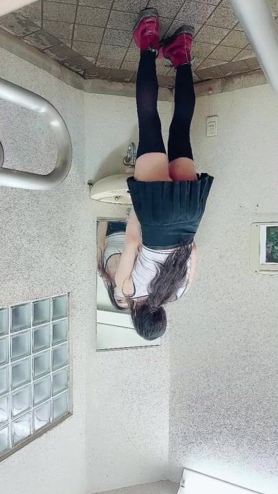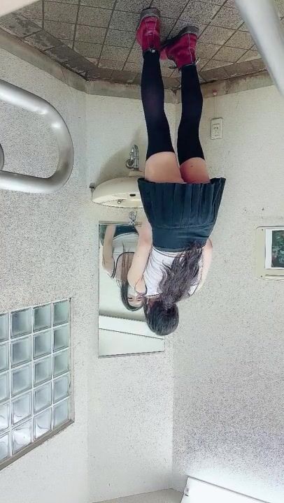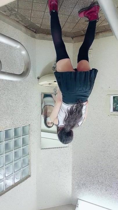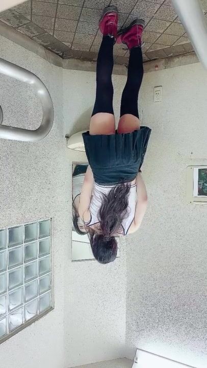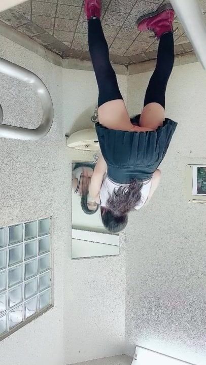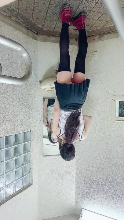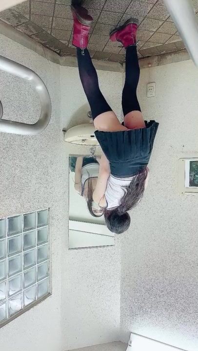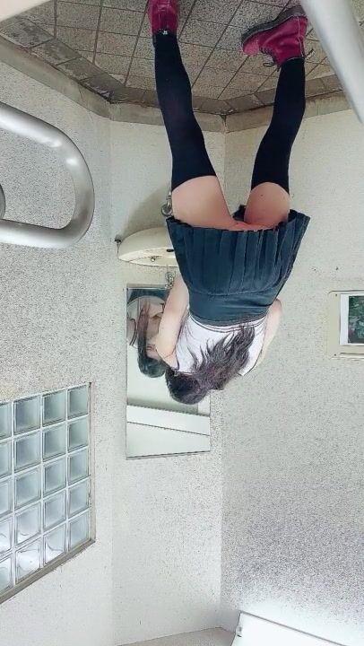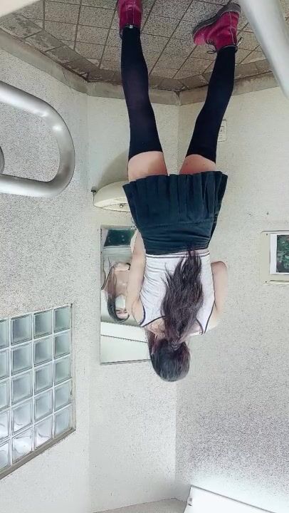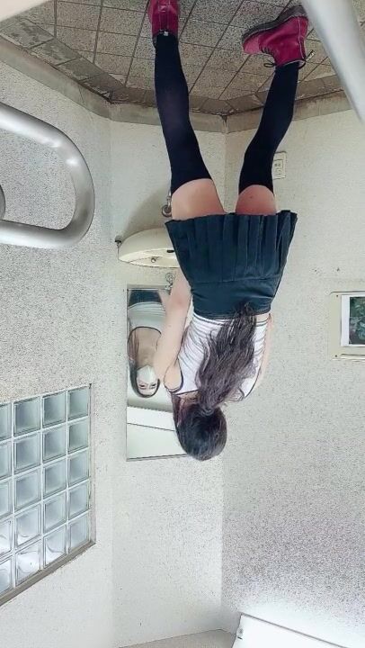 Japanese Ladyboy Standing Masturbation (Public Toilet)