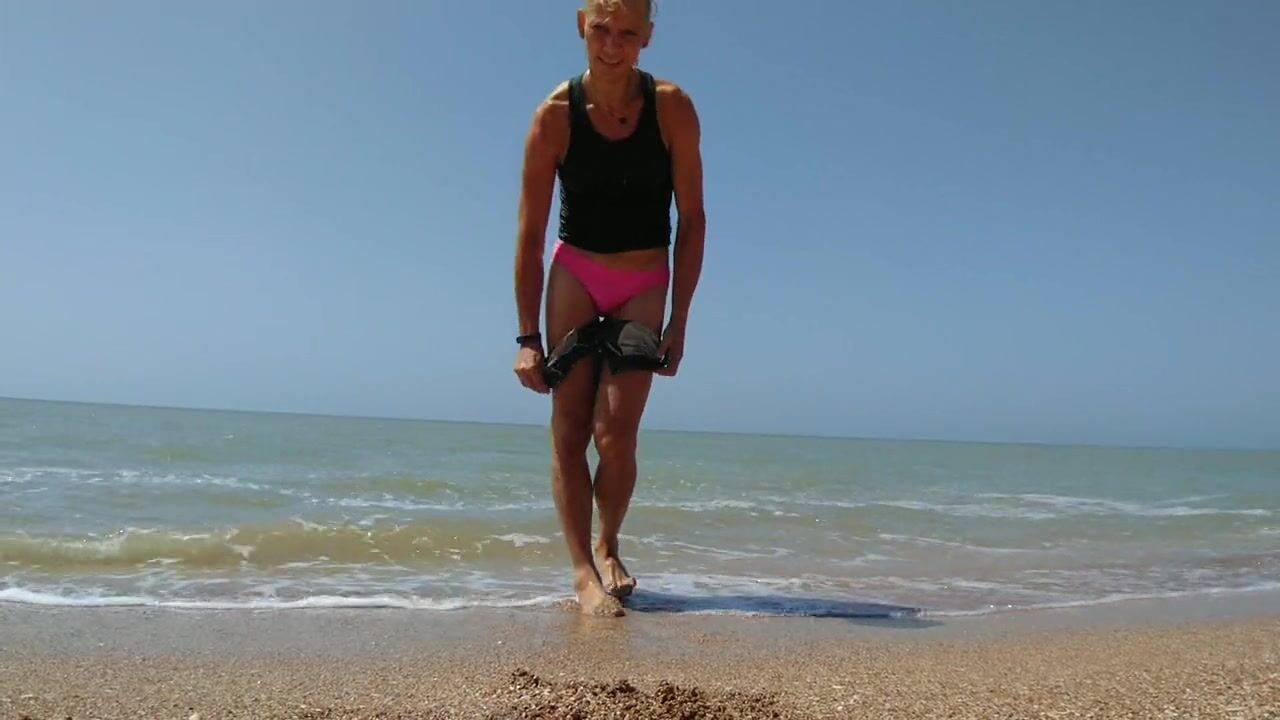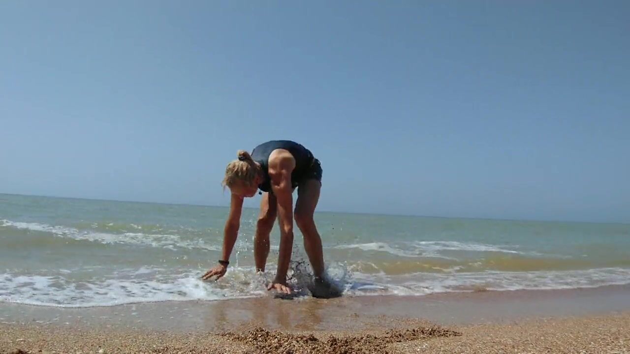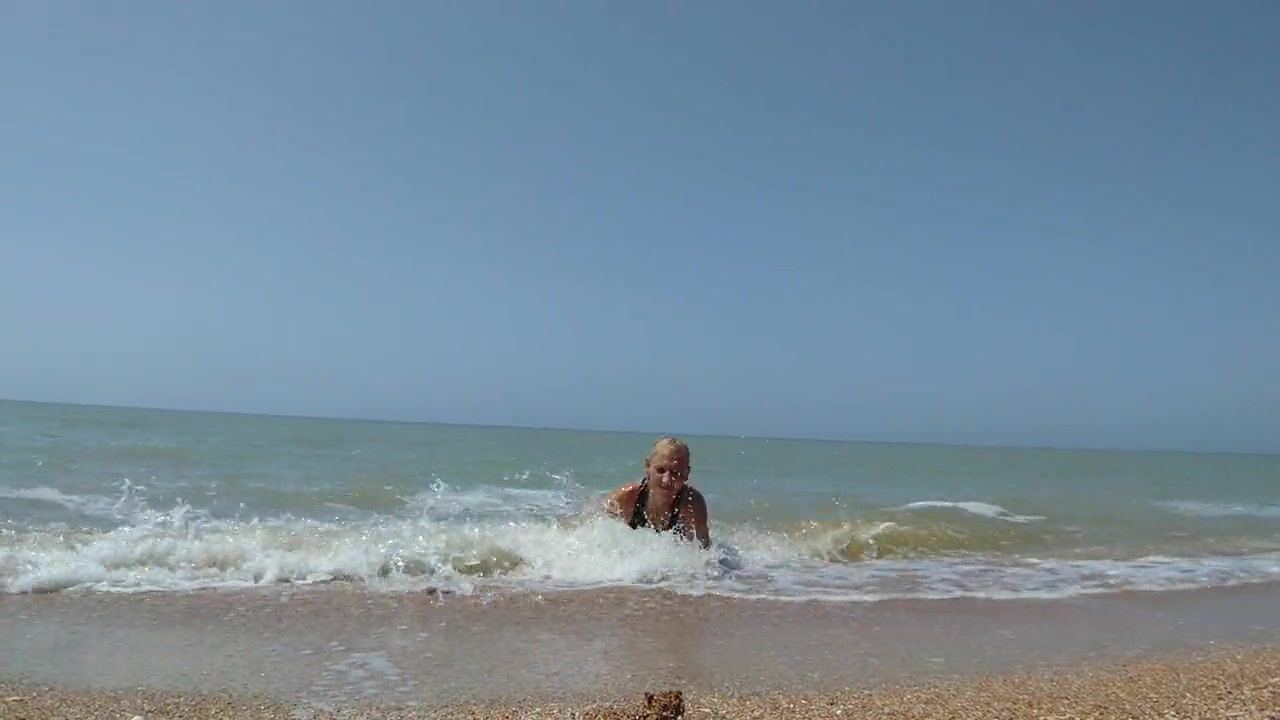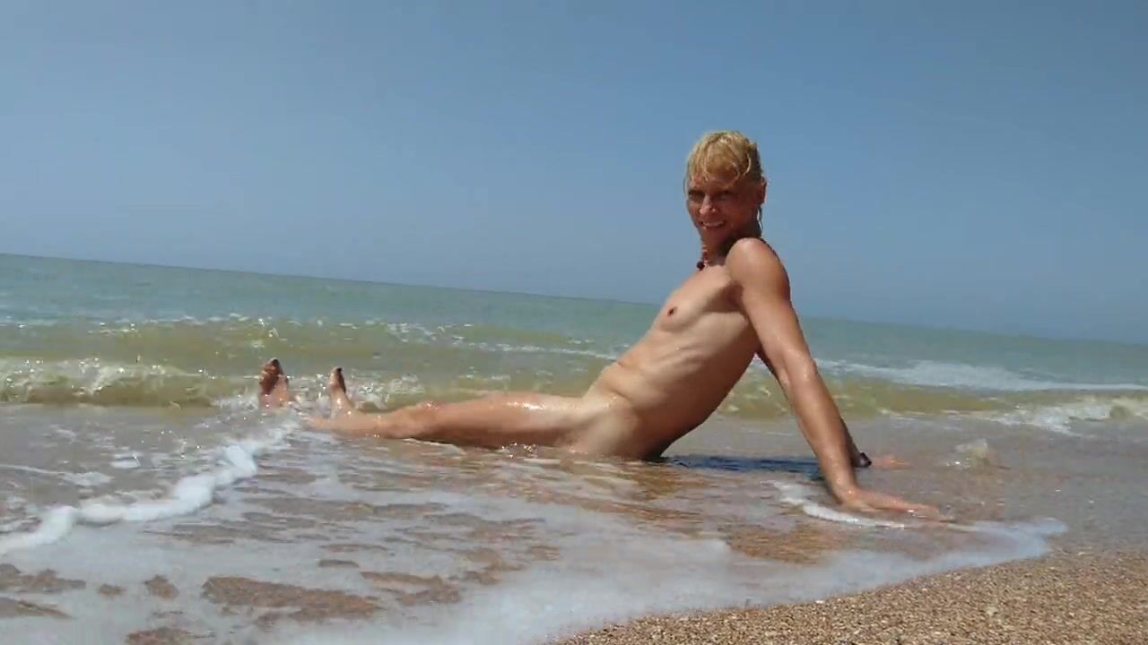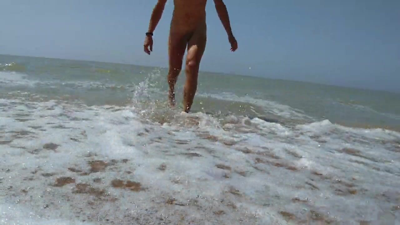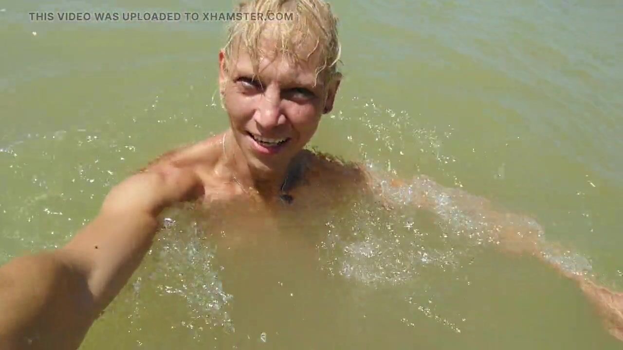 Sexy Lexy swimming nude in the sea on the beach, flirting, posing, playing with water and enjoying sun&sea!