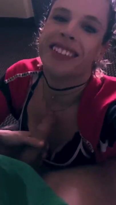 Sexy Trans Shemale Sucks Big Cock and Rides it in Public - Ai Generated