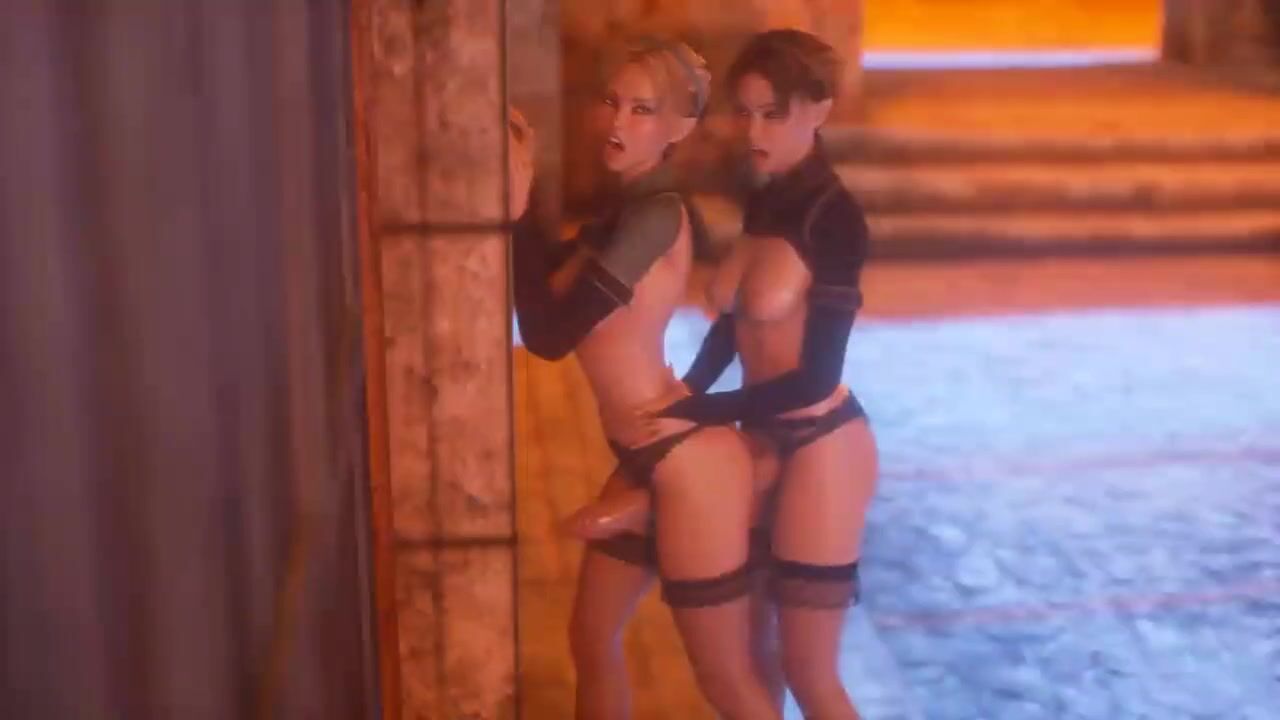 3d hentai two beautiful elf in fishnet stocking and high heels having sex