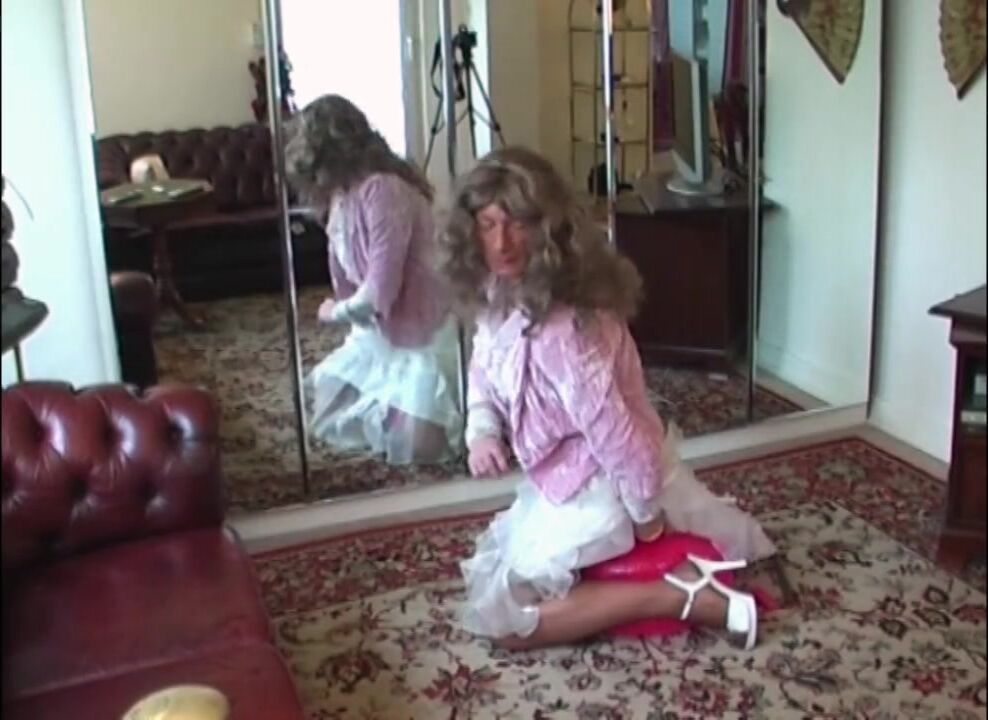 Dildo Ride & Cumshot In Sheer Silk Skirt And Nylon Stockings
