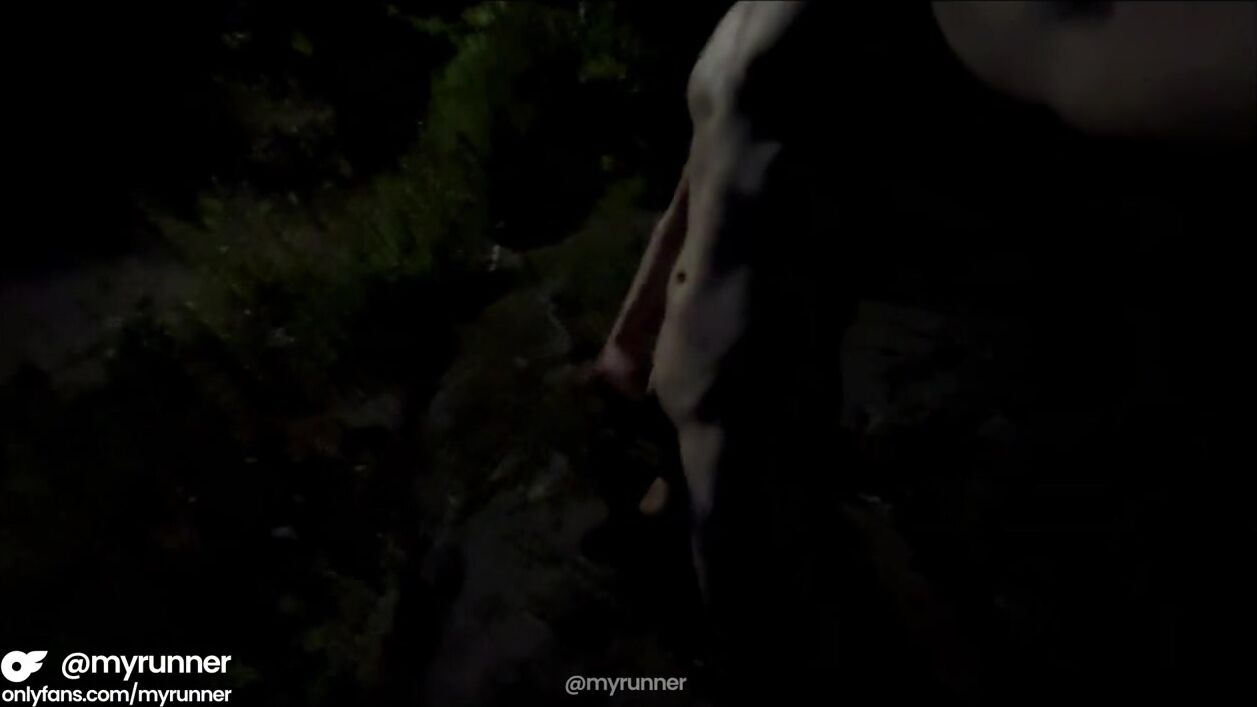 Sport Fit Boy and Extreme Night Cumshot at Park Bench