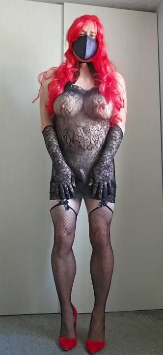 Eva_Red2020 Crossdresser G-cup Big tits fishnet dress Masturbat8ng Cumshot