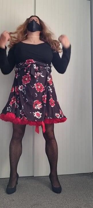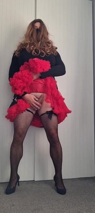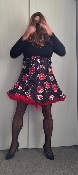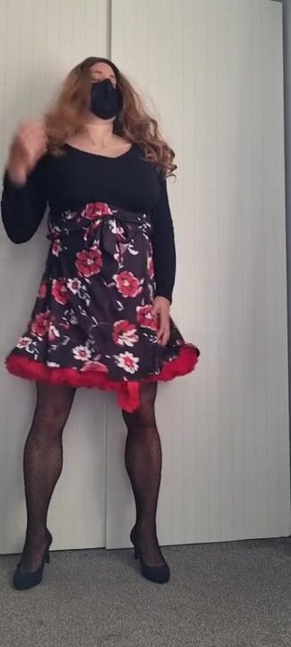 Eva_red2022 Crossdresser G-cup Big tits Floral Dress Tutu Show