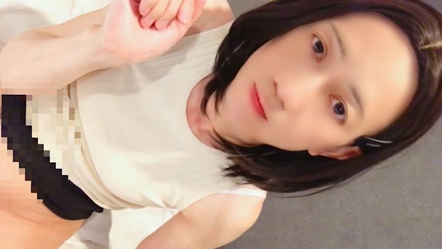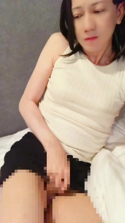Japanese crossdresser masturbates while staring at the camera