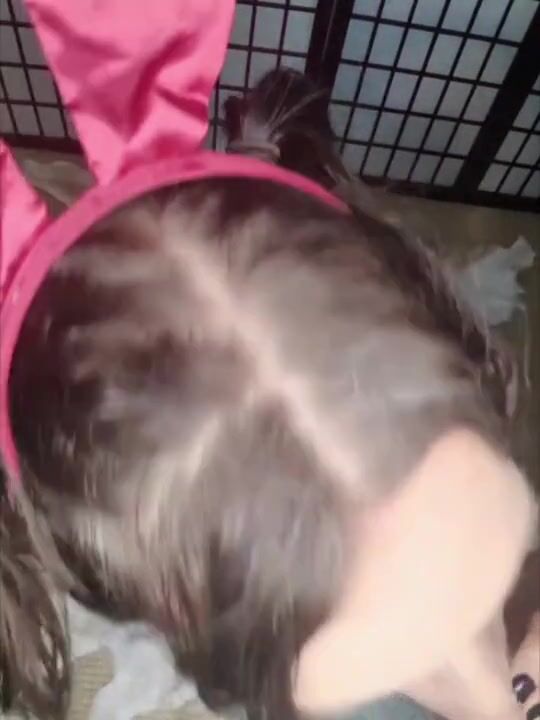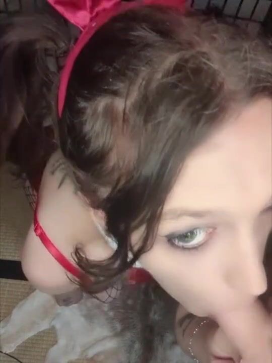 Tgirl bunny sucks cock for cum