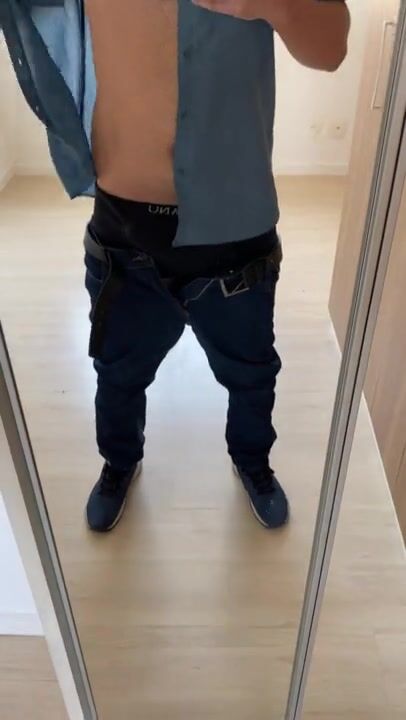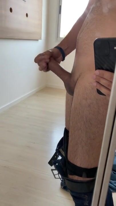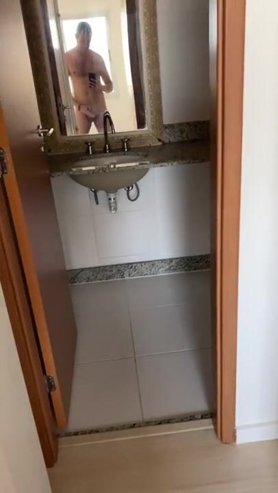 broker enters the apartment, masturbates in front of the mirror and then cums in the sink!