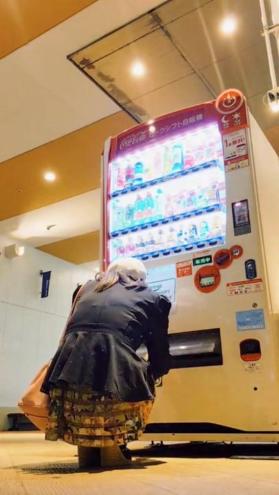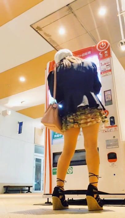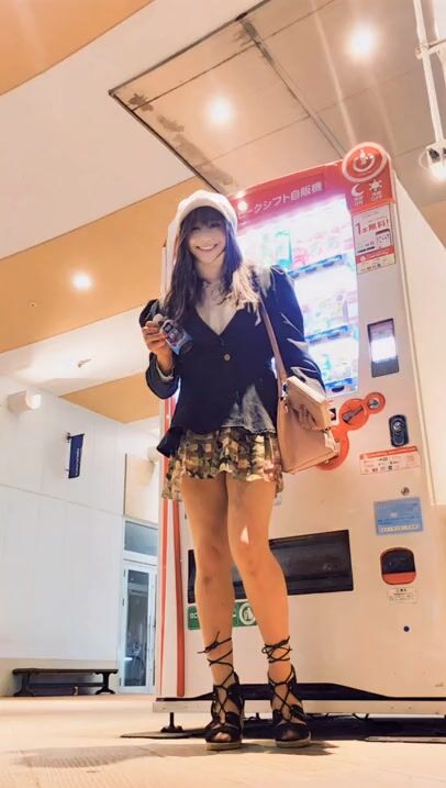 ミニスカで自販機でジュース買った!後ろからパンツ見られちゃったかなぁ?