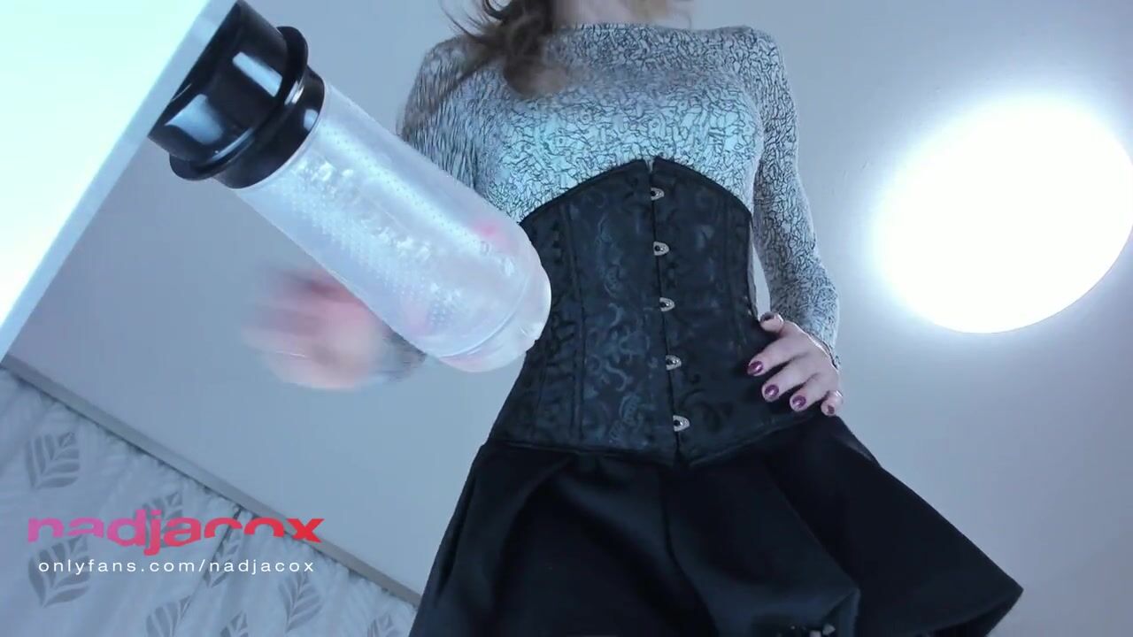 JOI horny mistress with corset and mini skirt huge cock fuck hard fleshlight cum in your face