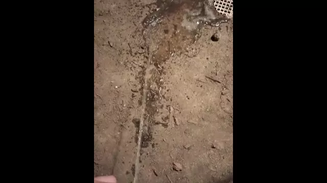 Peeing on the sidewalk by the drain