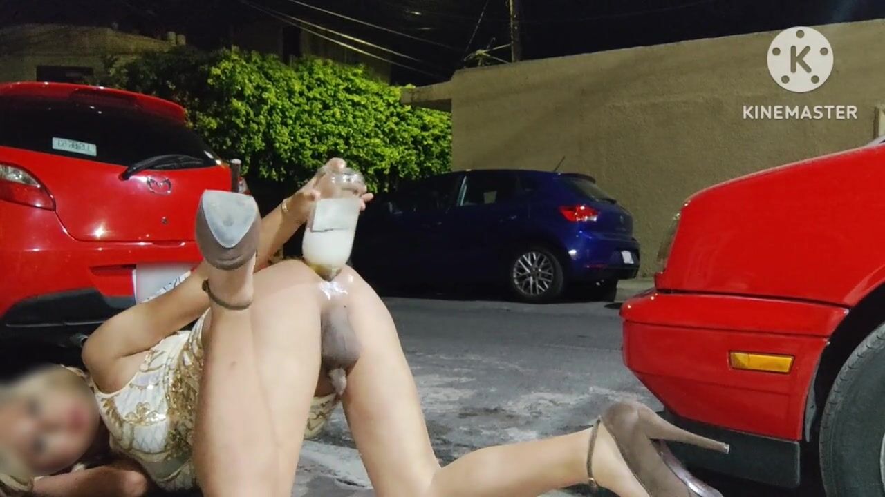 Sissy getting 900ml beer enema OUTSIDE AT THE STREET!