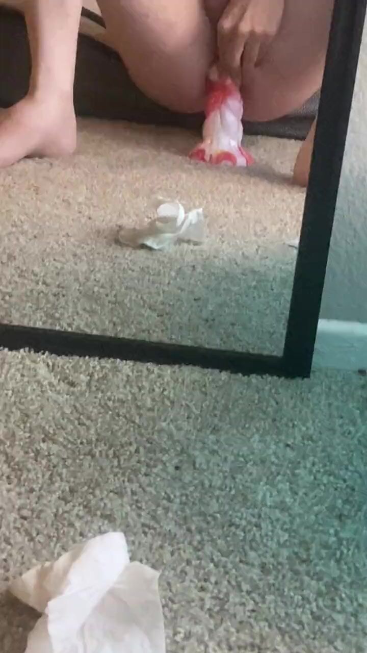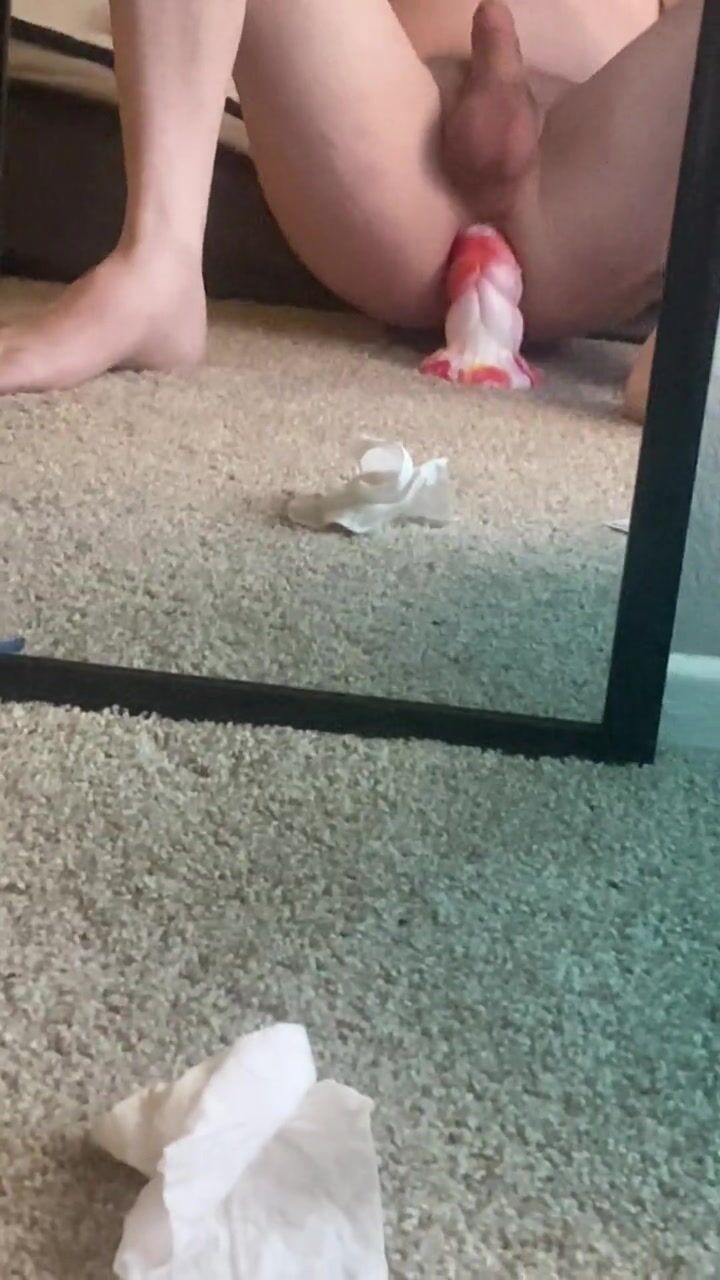 Sissy riding her dragon dildo and cumming
