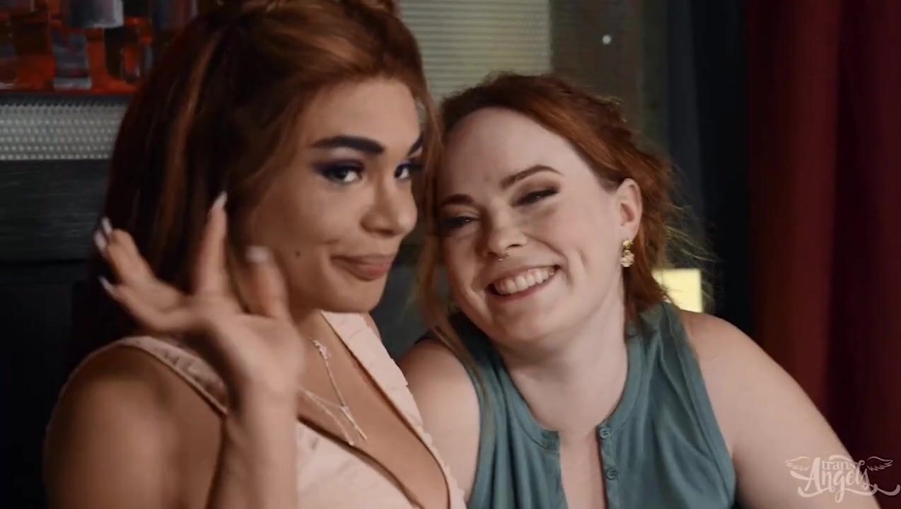 Panther Cat & Anne Antonela, 2 very beautiful horny TS share a big white cock (Ana...