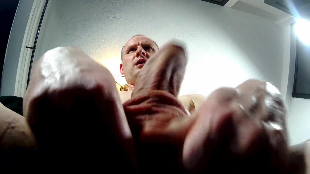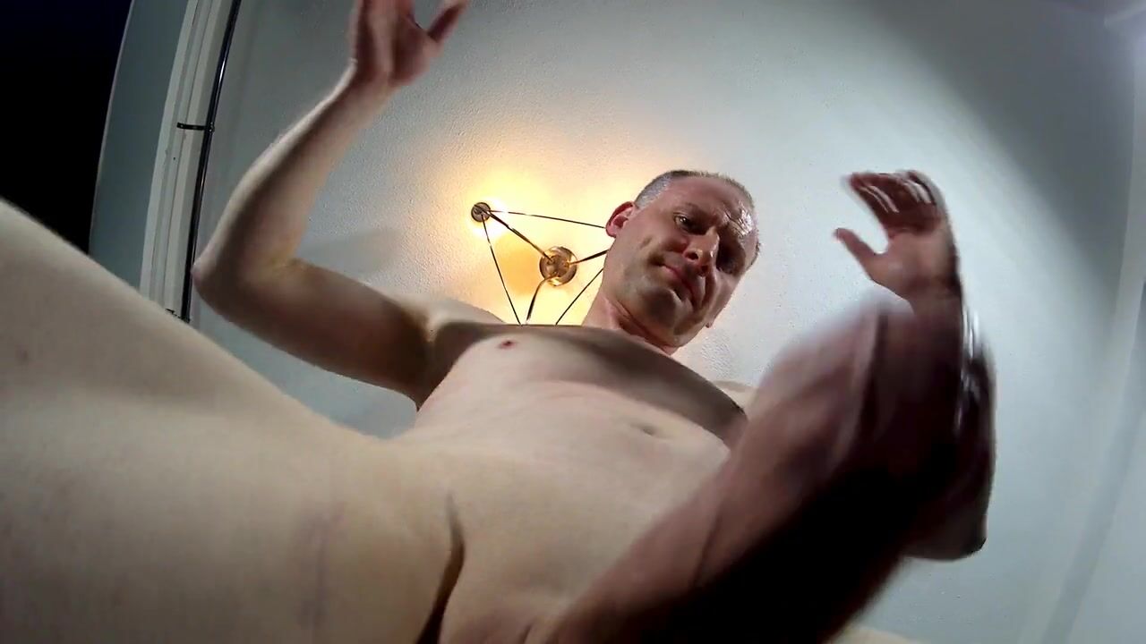 Kudoslong naked close-up his erect cock is shaved smooth he wanks looking down at the camera