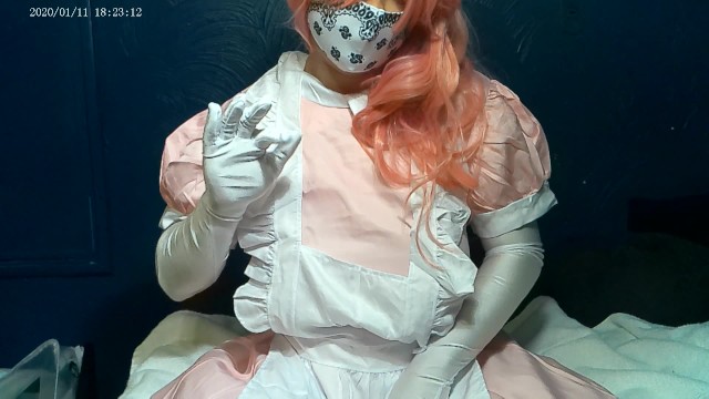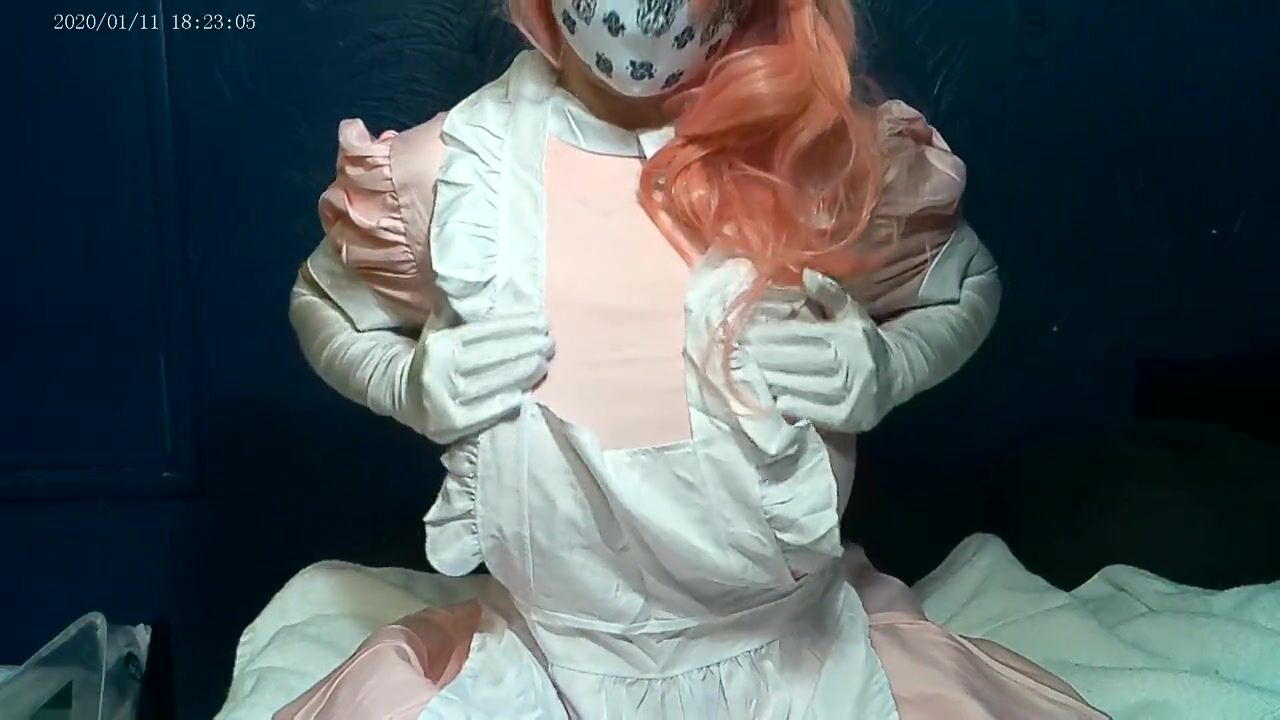 Anime Cosplay Sissy Maid Crossdresser shows off for the camera