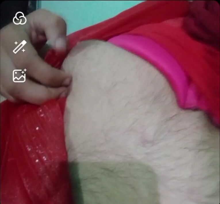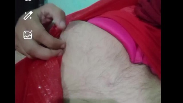 Indian gay Crossdresser in Red Saree showing his boobs on paid nude video call xxx????