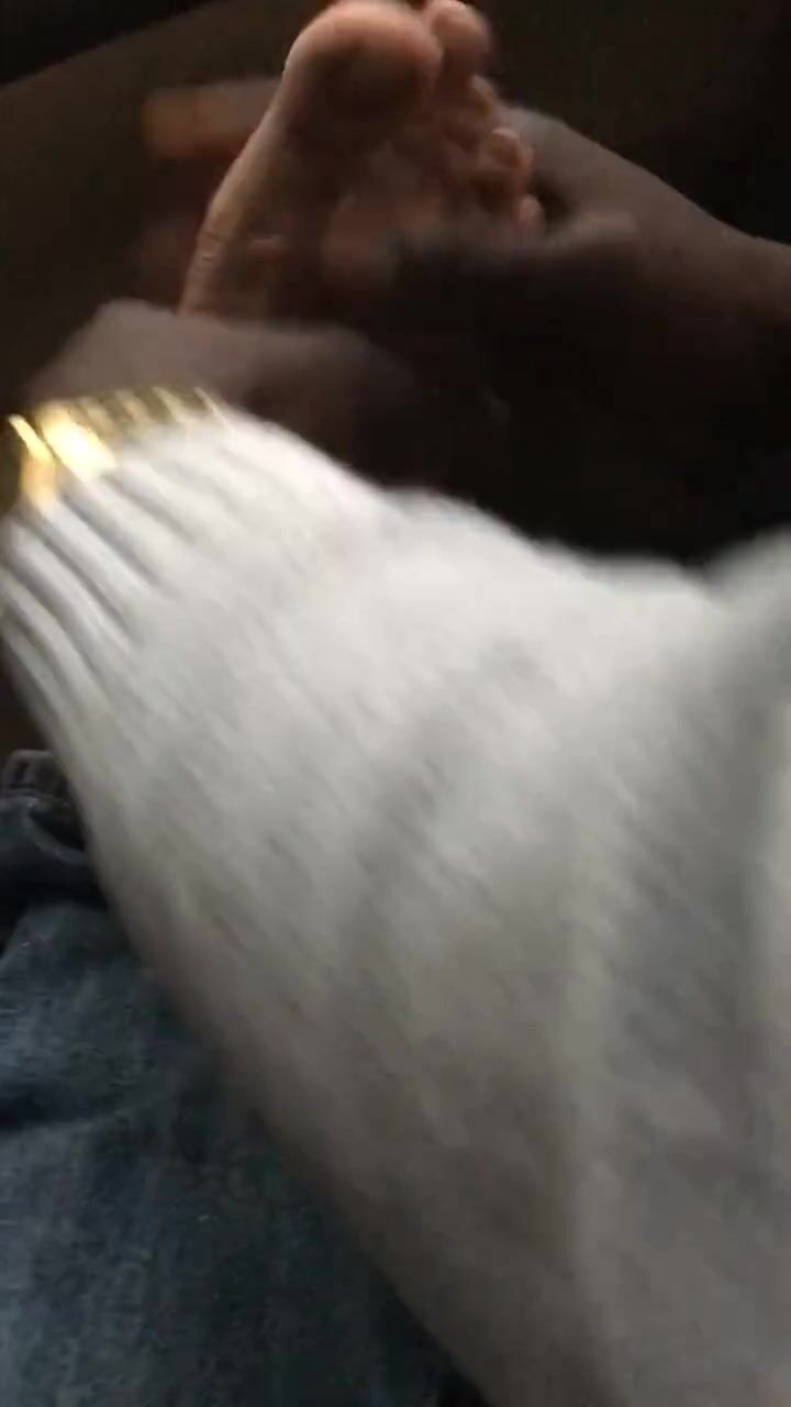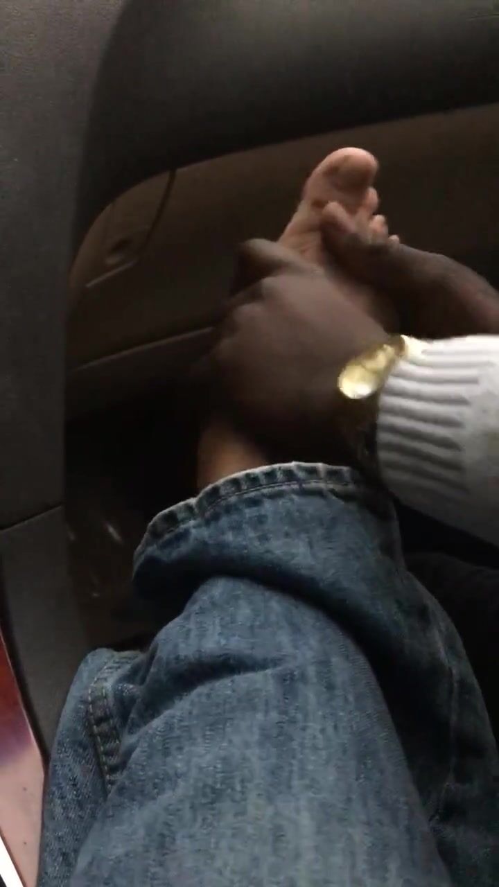 Smelly foot rub and toe play at the parking lot