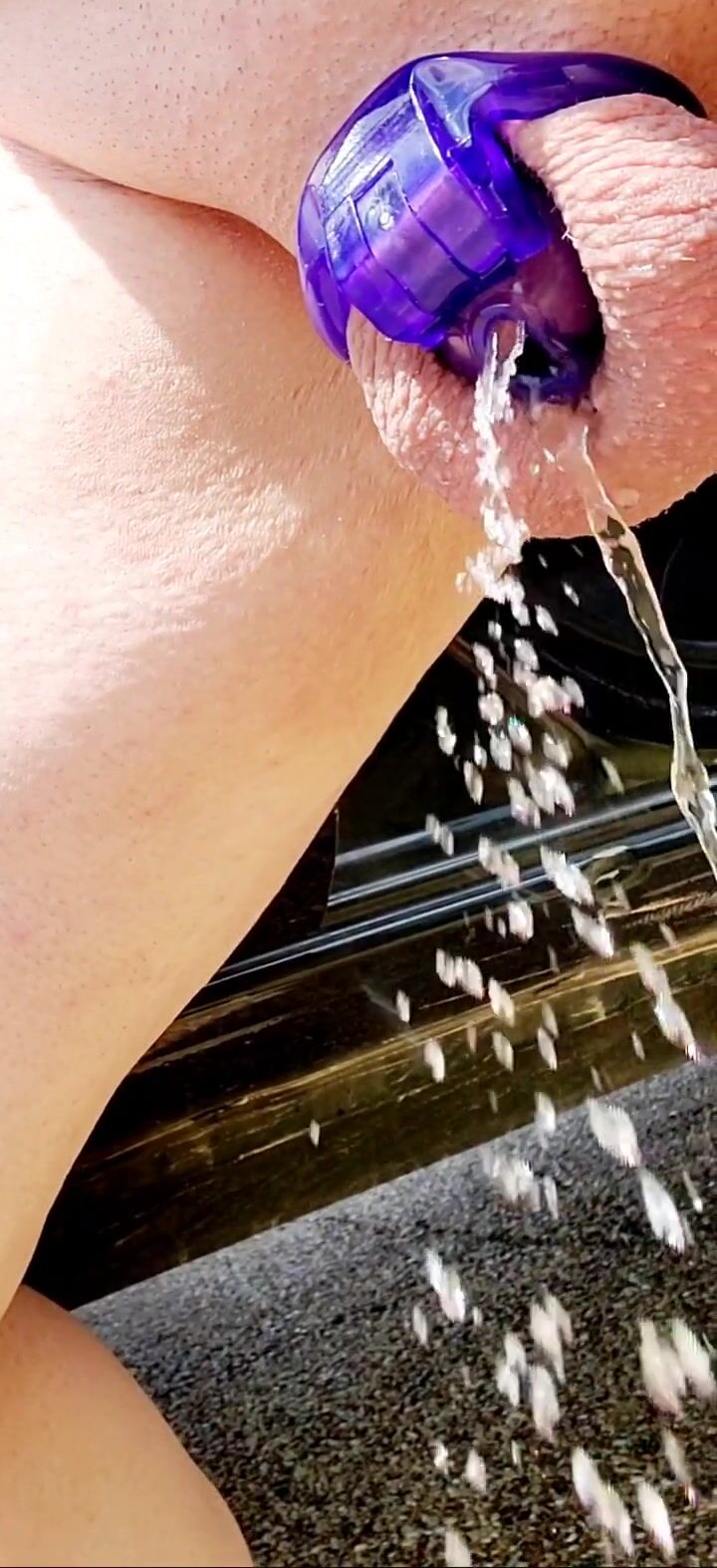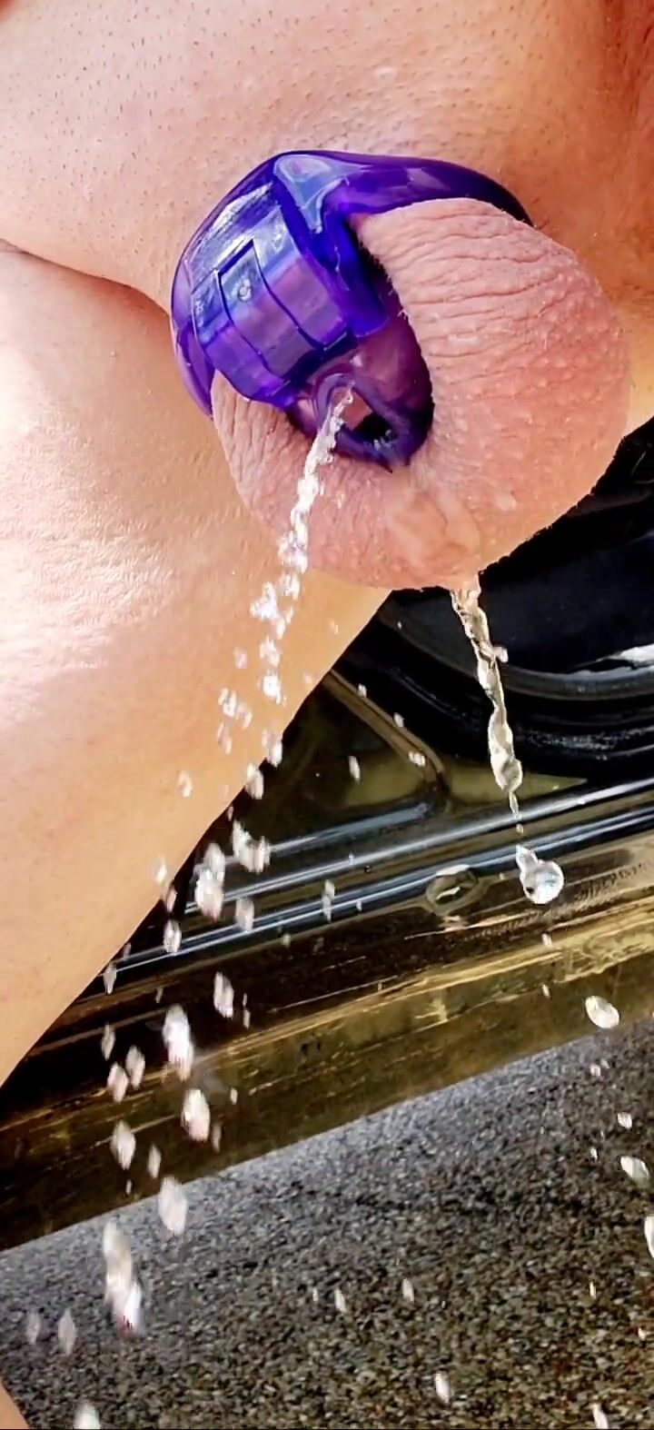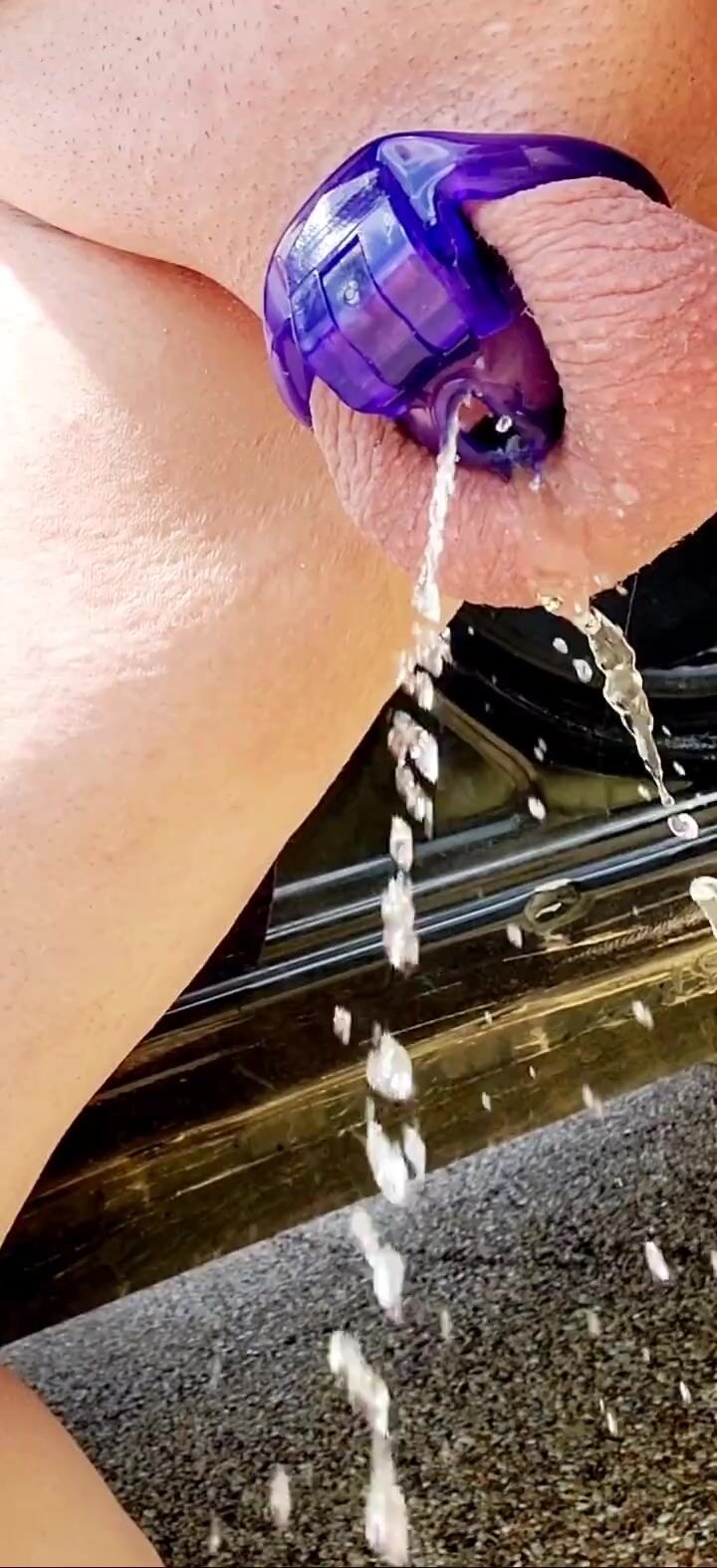 Pee Desperation Sissy Femboy Peeing in Chastity on the Side of the Road!