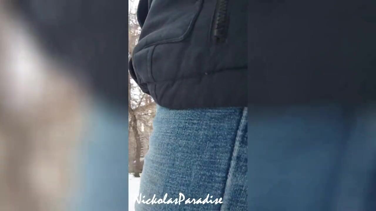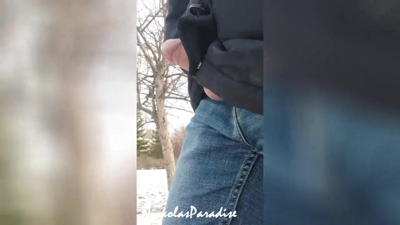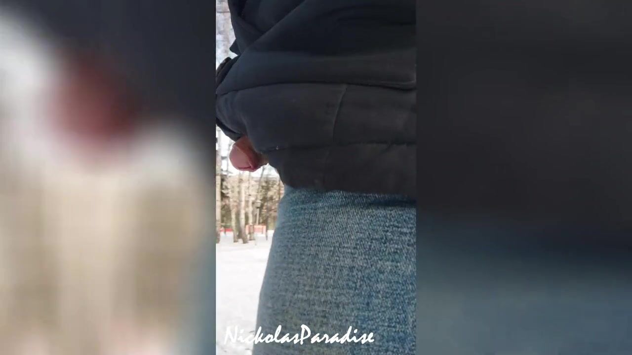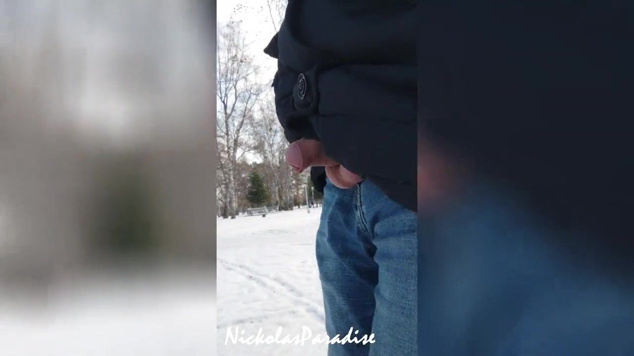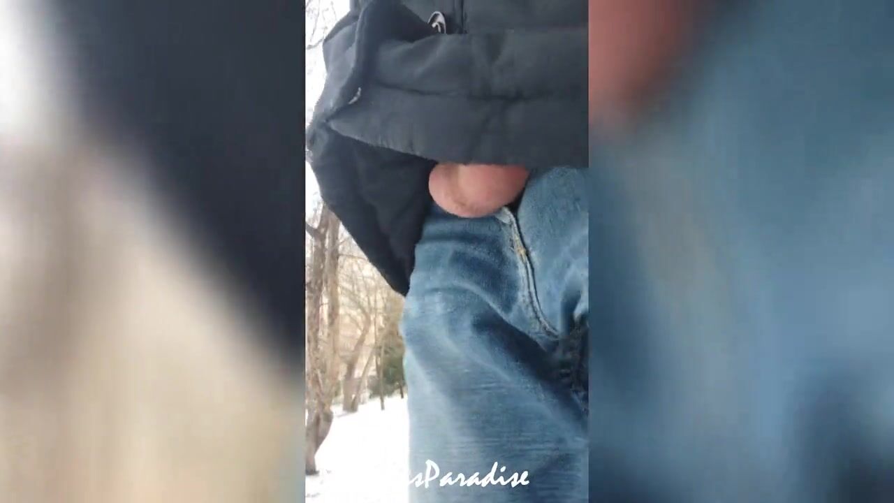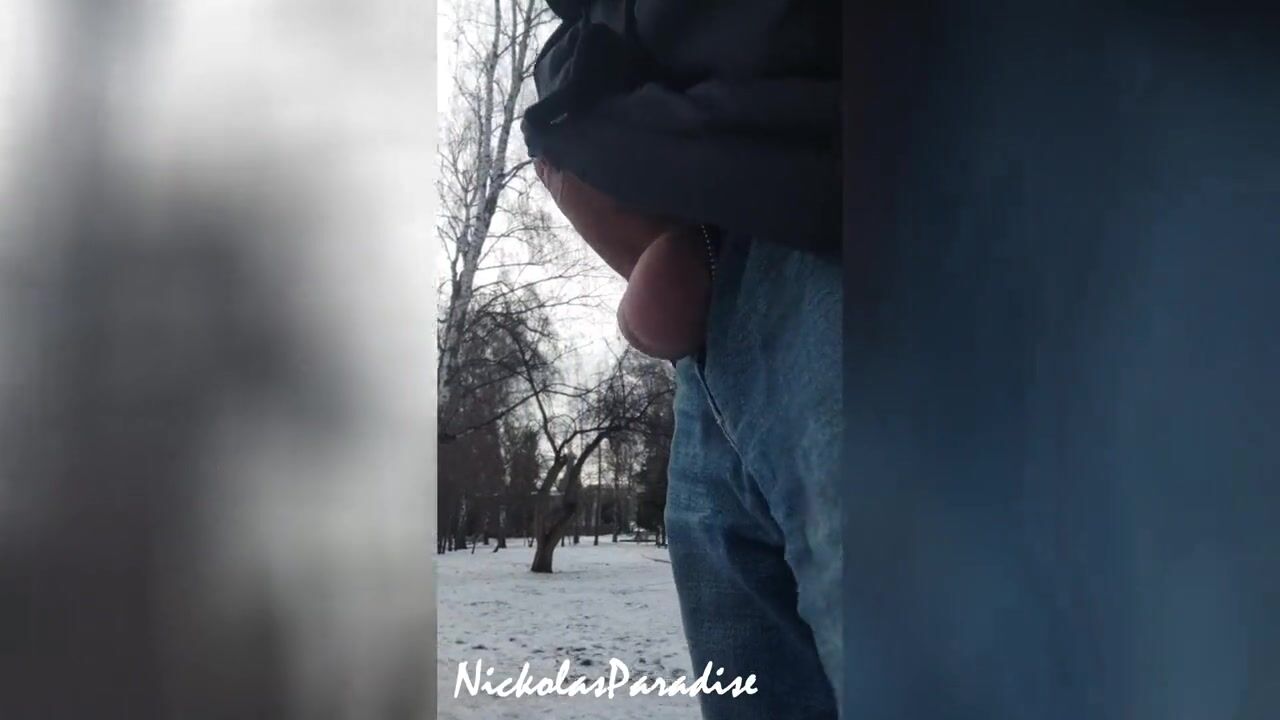 Первый снег. Эксгибиционист светит членом в общественном парке
