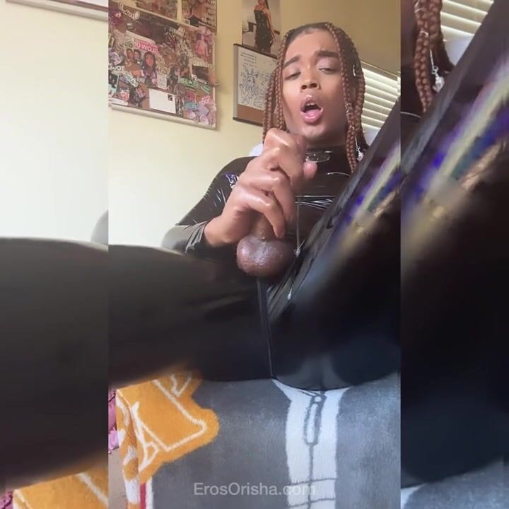 BIG DICK TRANS HOTTIE STROKING IN LATEX BODYSUIT