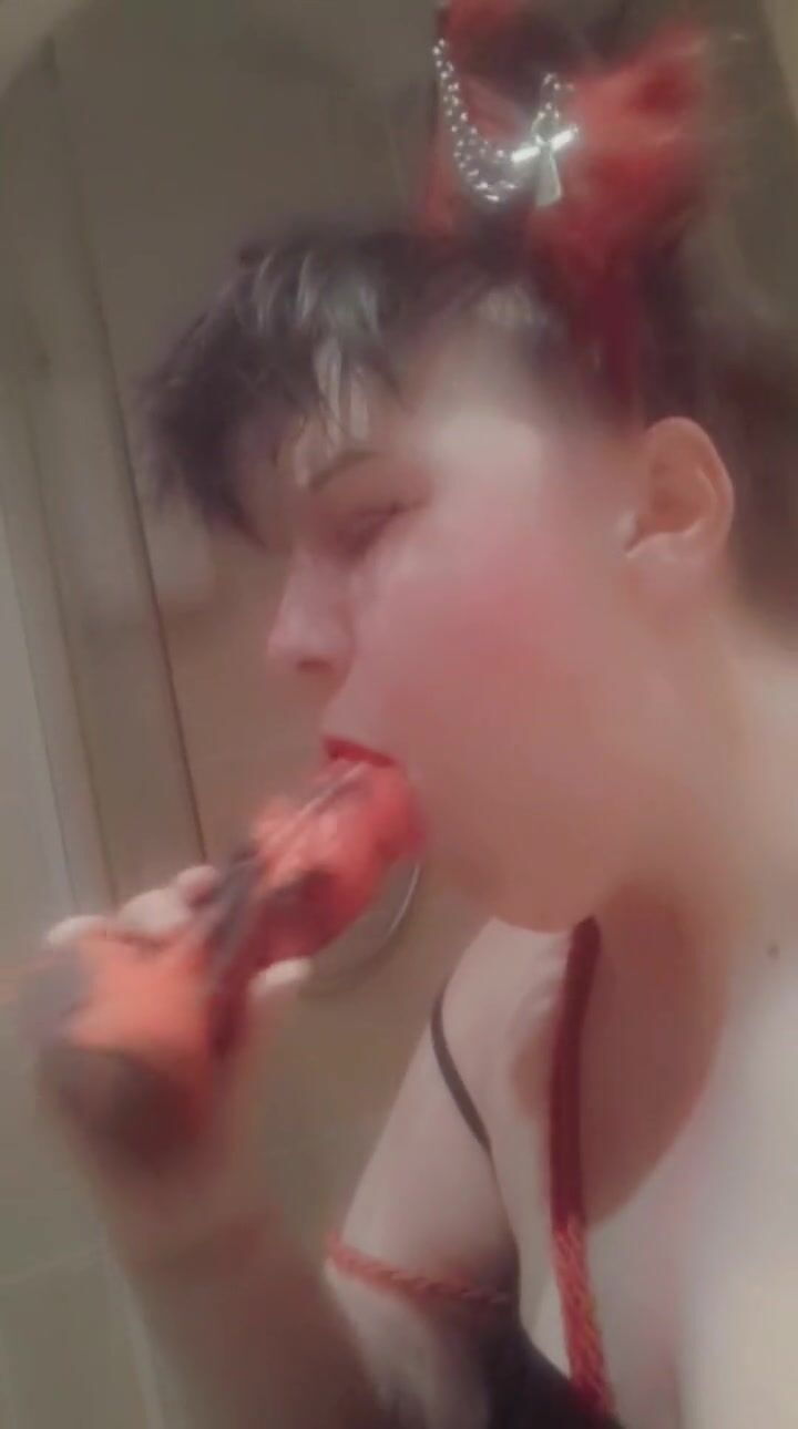 Sexy Trans Shemale Sucks Big Cock and Rides it in Public - Ai Generated
