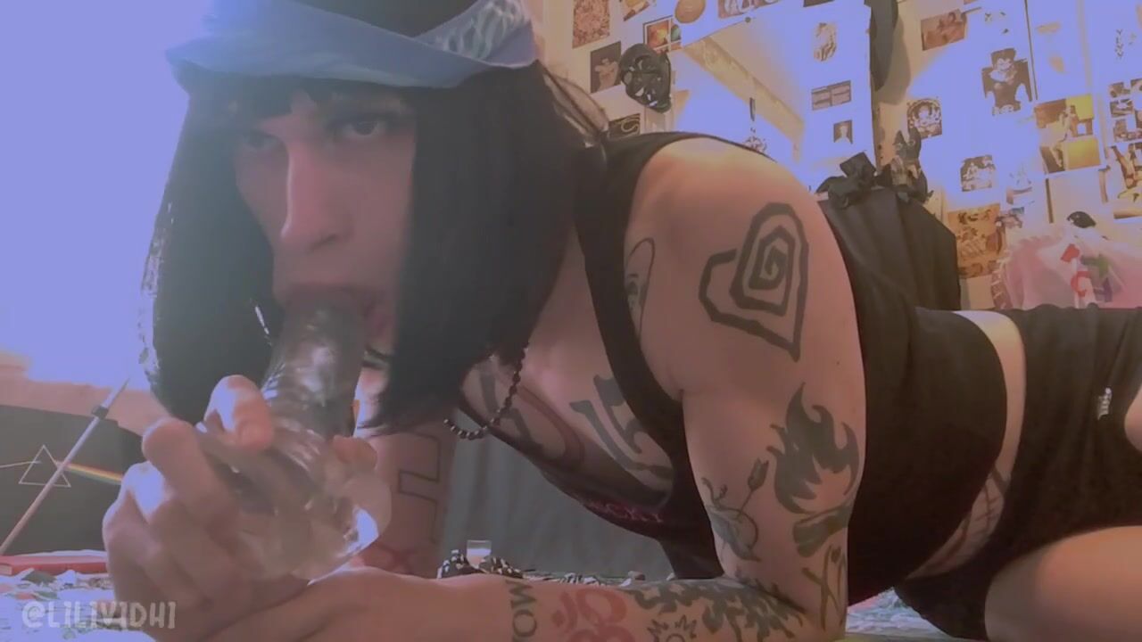 Tattted Tgirl Sucks Cock In Cute Pink Socks ????