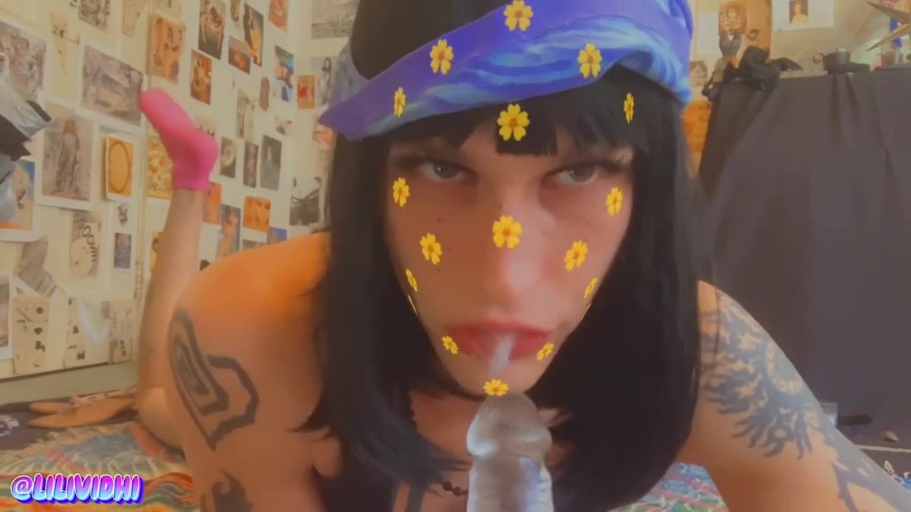 Sexy Trans Shemale Sucks Big Cock and Rides it in Public - Ai Generated