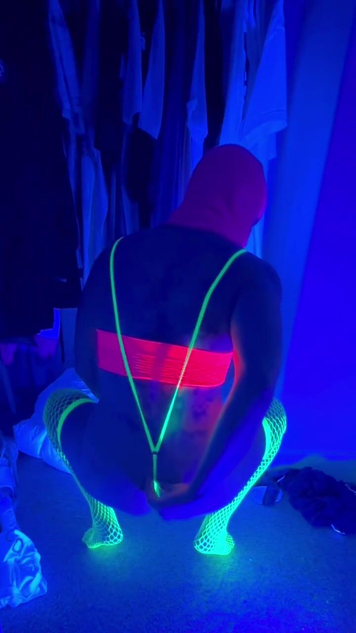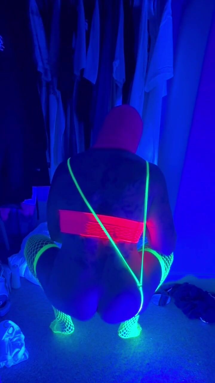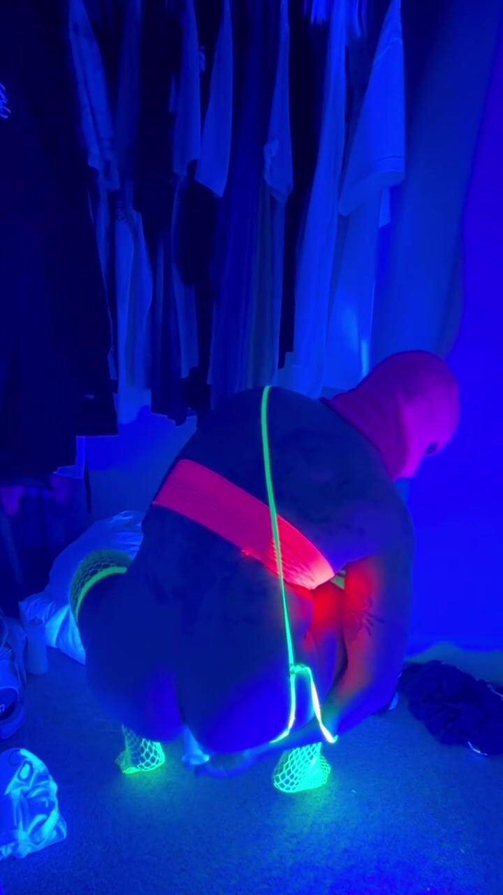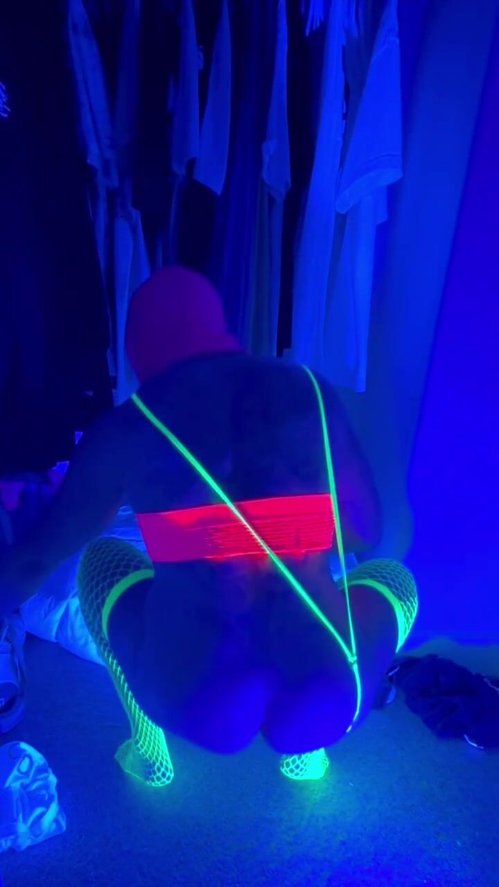 Neon rave party by myself. Blacklight anal fun with toys while rolling on molly