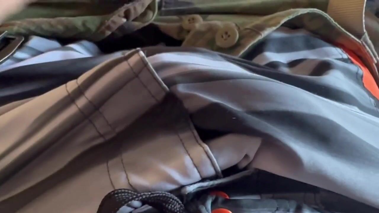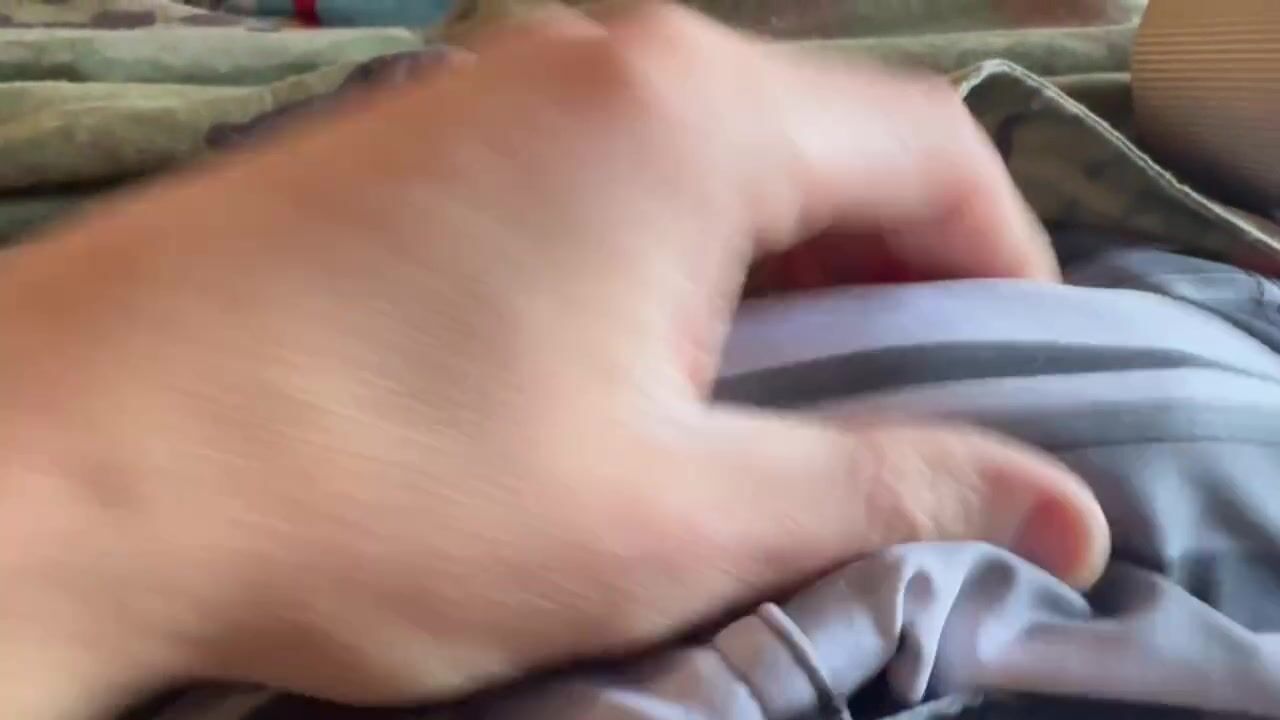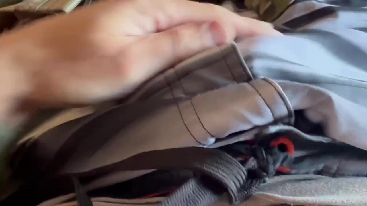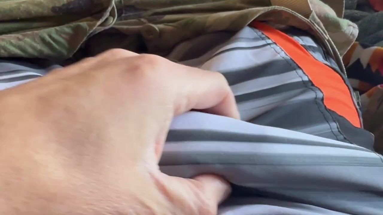 Army soldier wears swim trunks under his uniform and jerks off a hot load