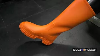 Guyzin2rubber, Rubber n Boots: Quickie in Orange Wellies