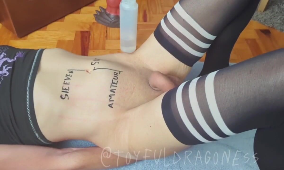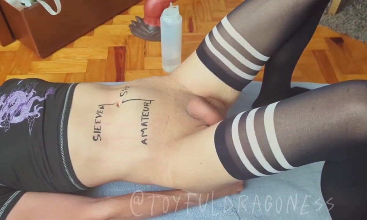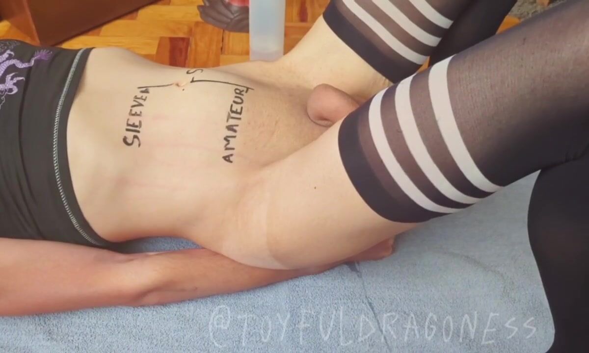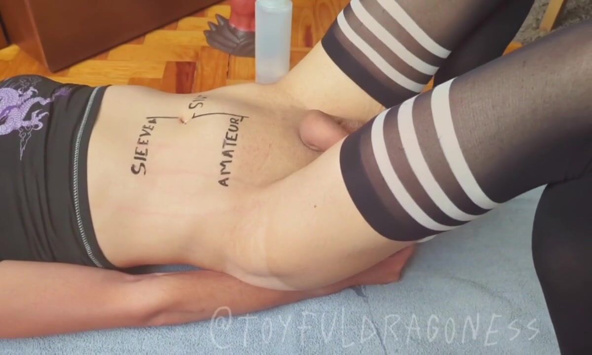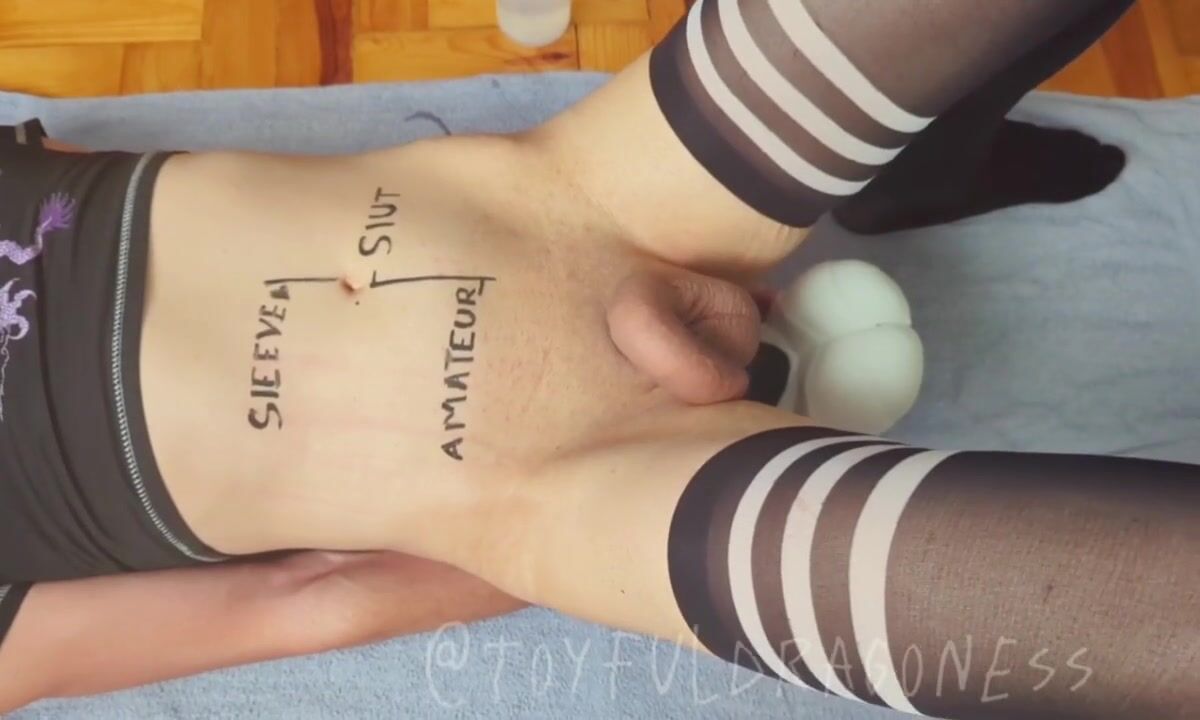 Sissy slut is made by mistress to bulge her belly with a huge dragon dildo
