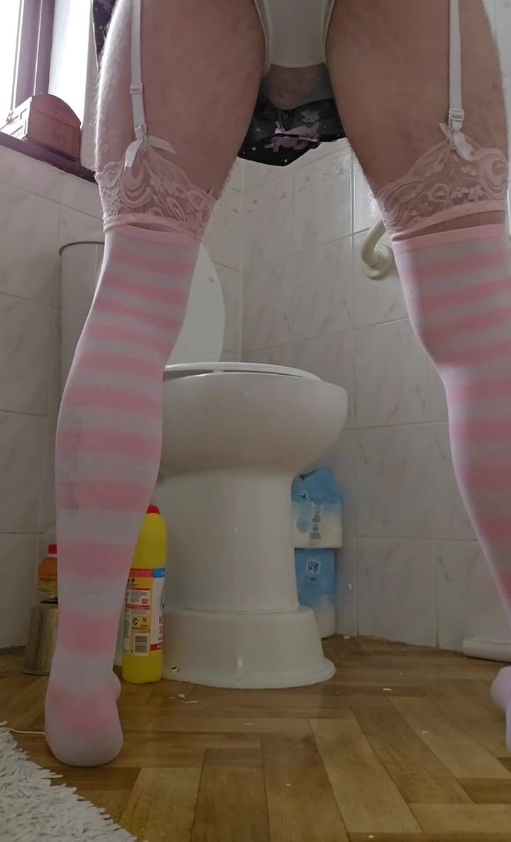 Sissy pissing like a bitch in tights nylons stockings panties dress