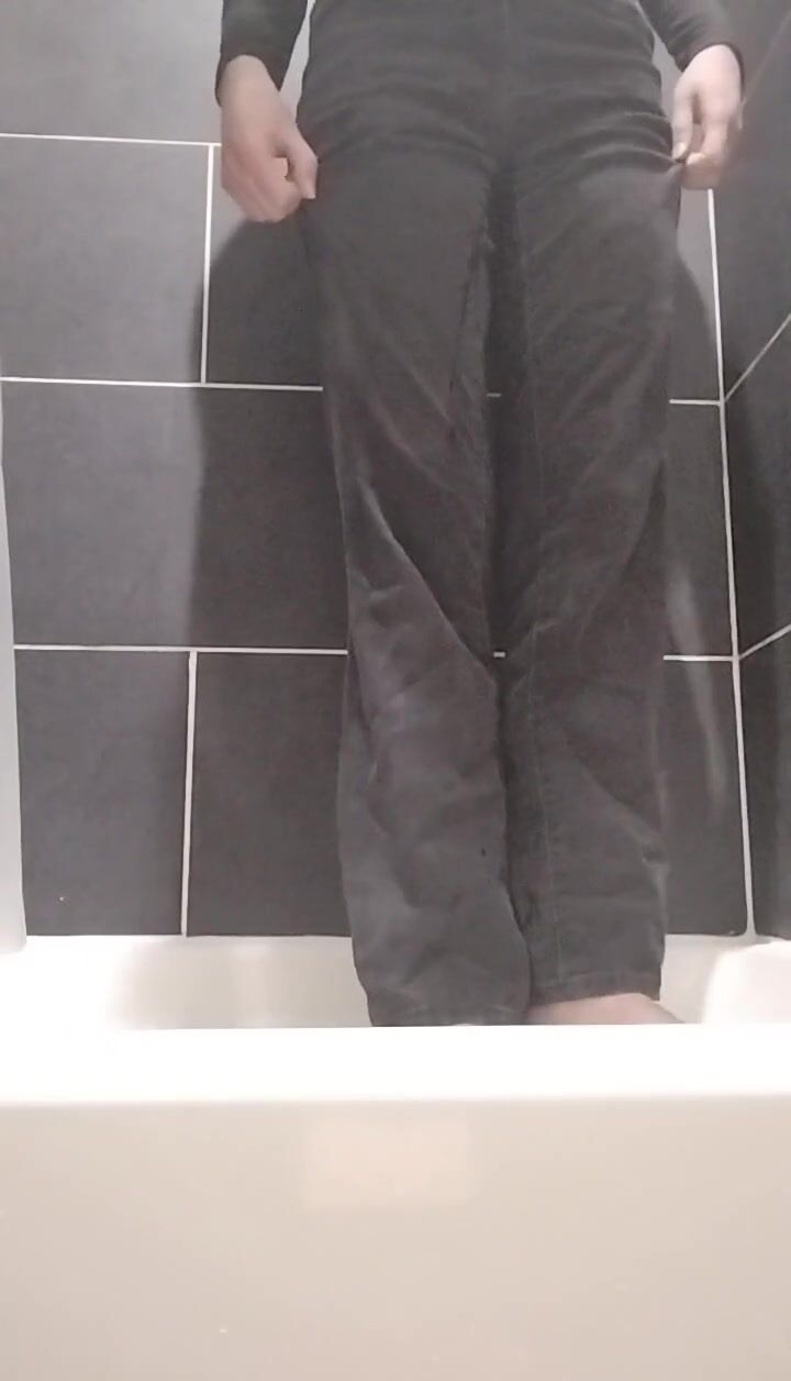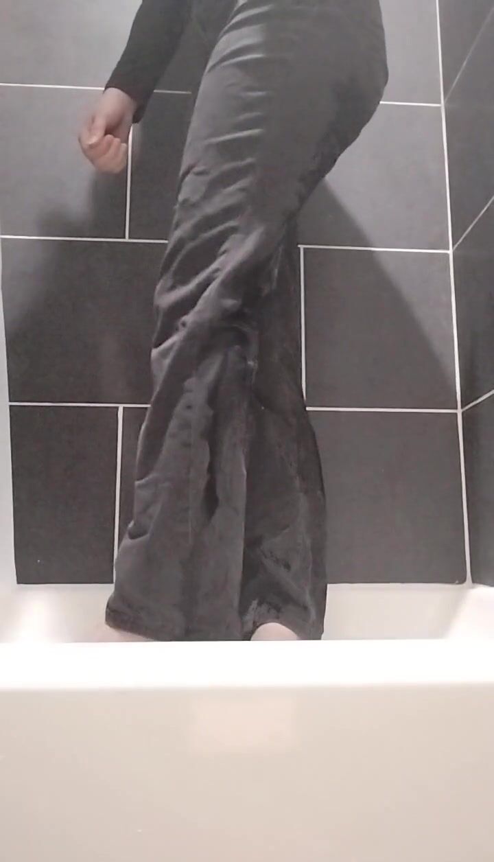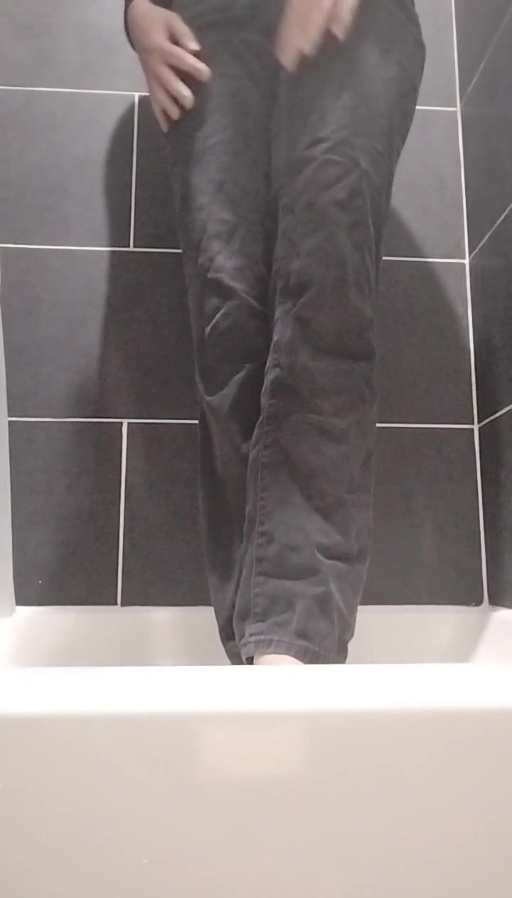Ftm guy wetting his black jeans