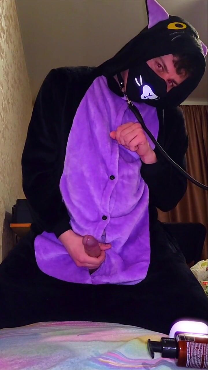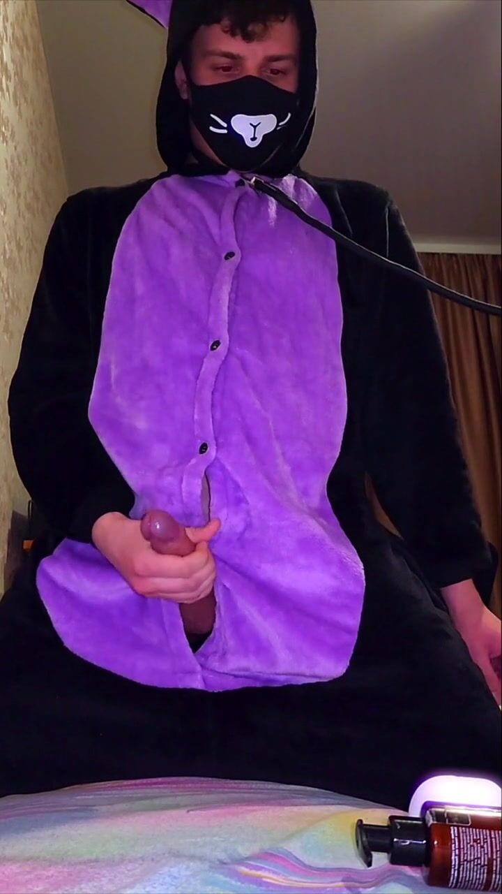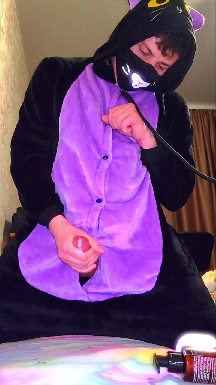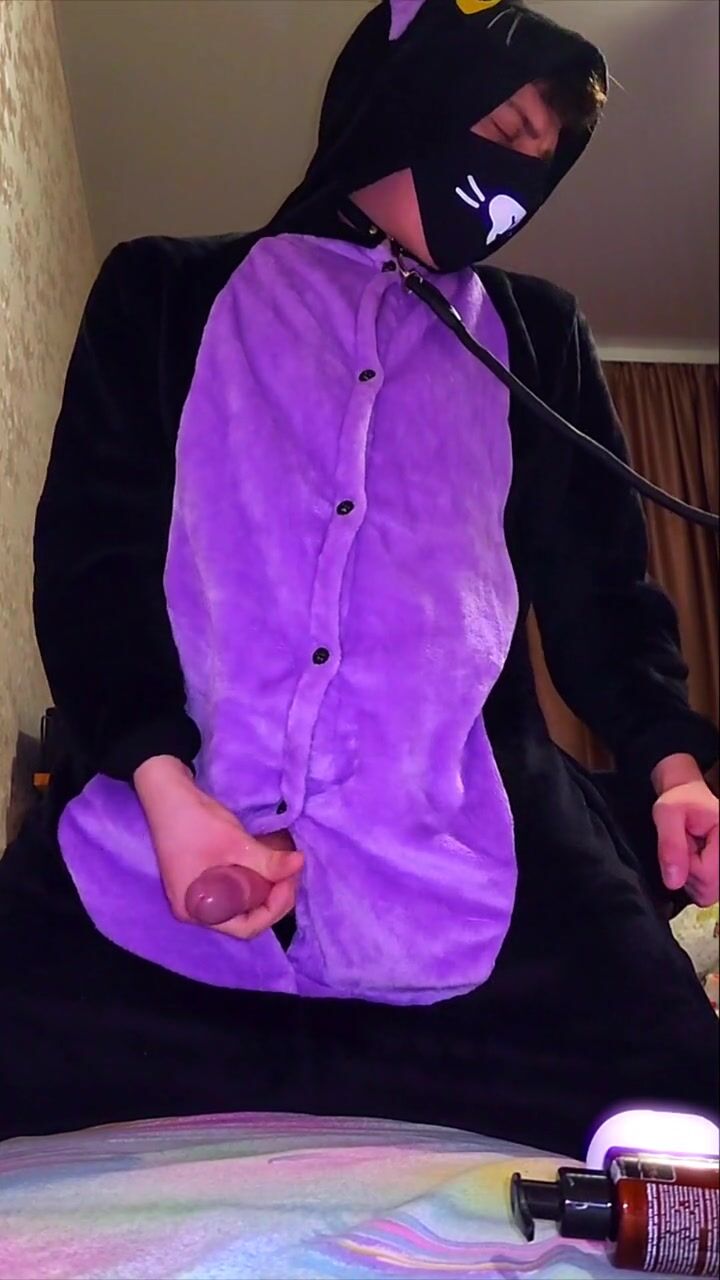 Big dick catboy masturbation and slow-mo cumshot