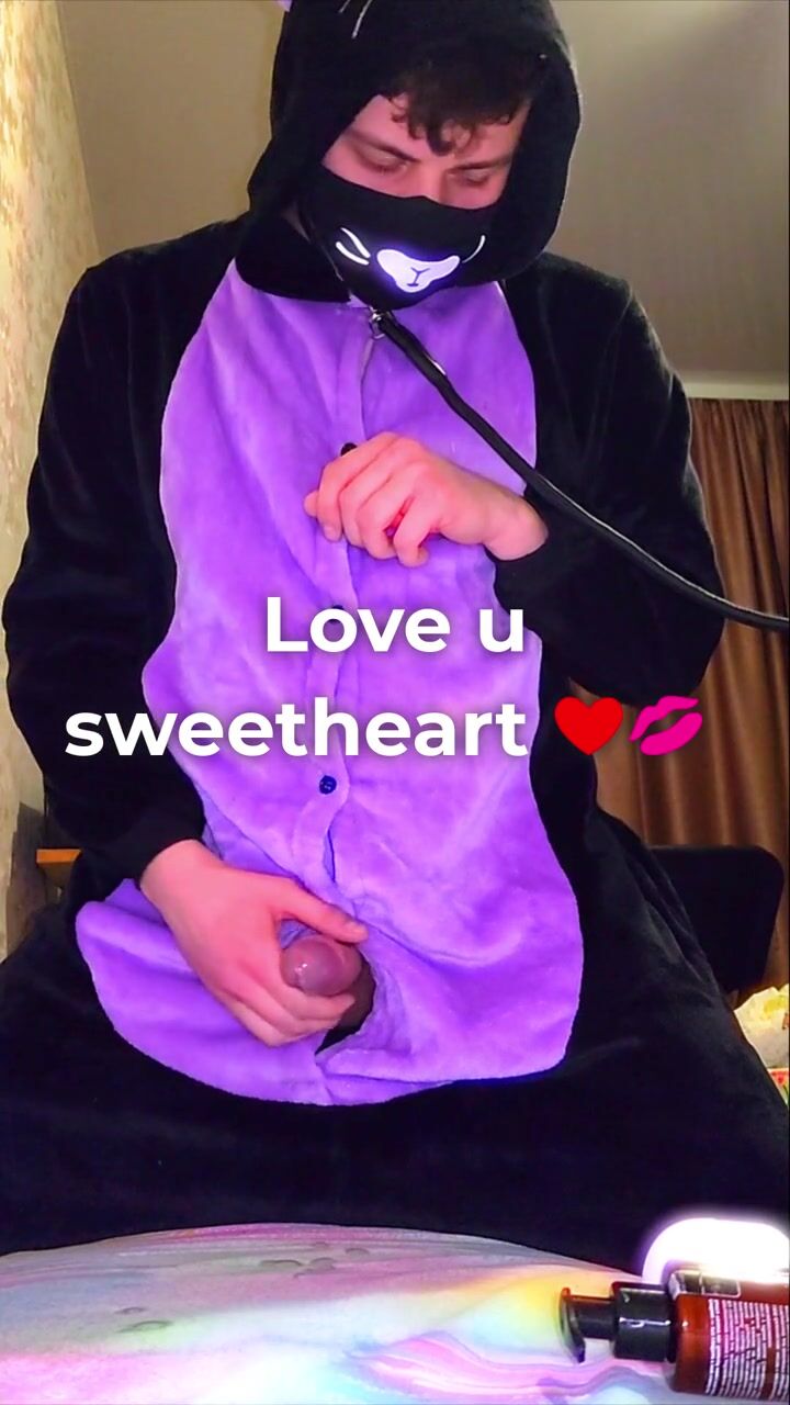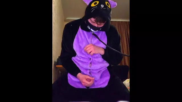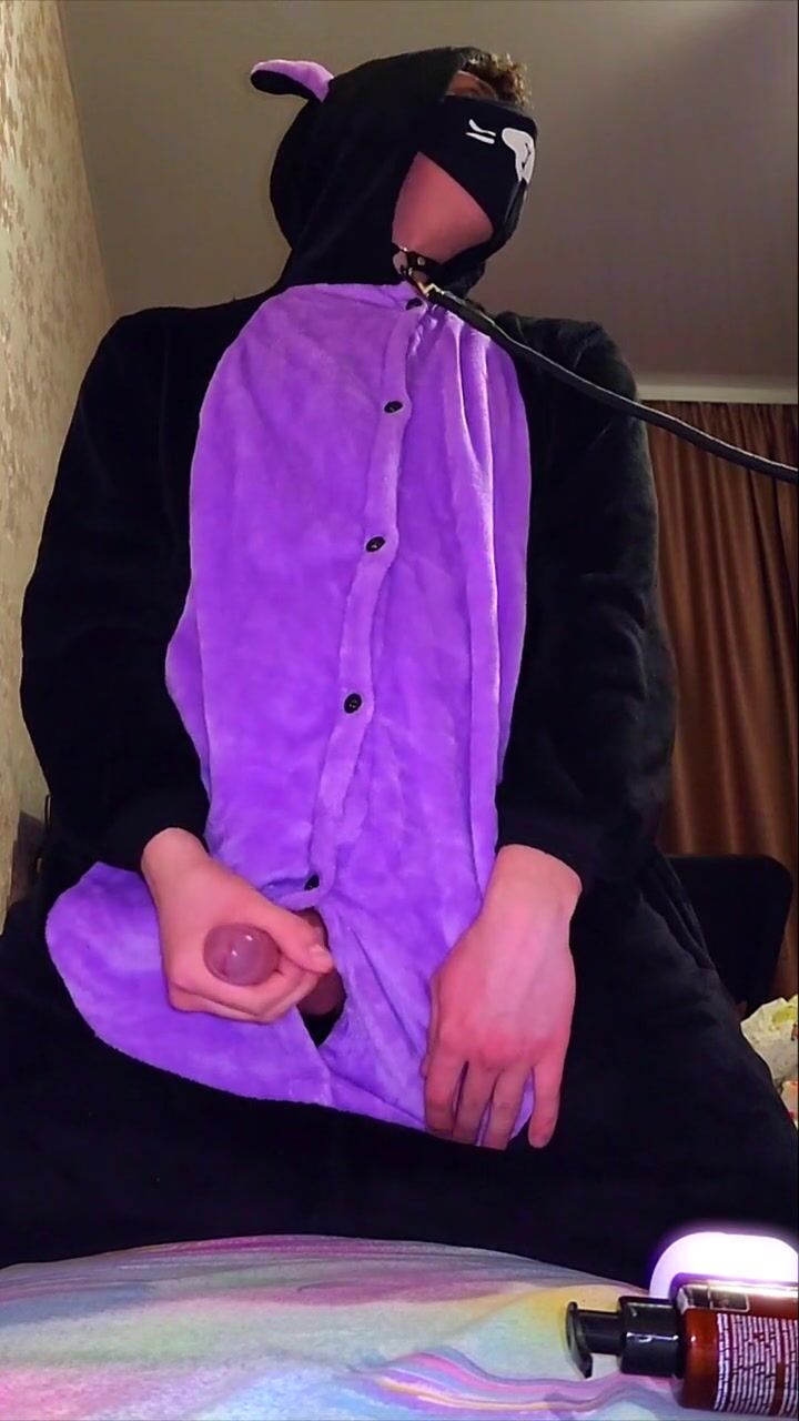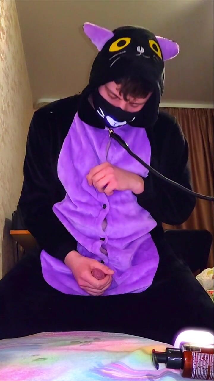 Big dick catboy masturbation and slow-mo cumshot