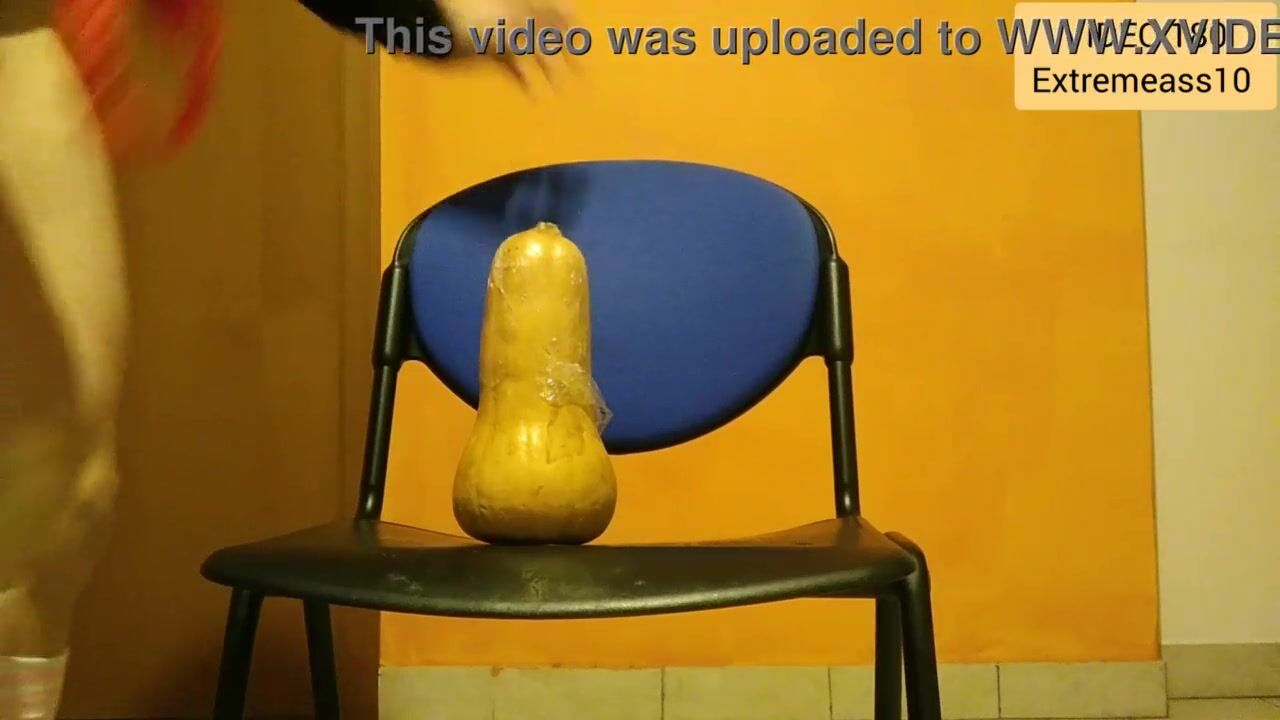 Extreme anal insertion in sospension with an huge pumpkin (faggot version)