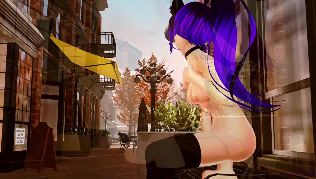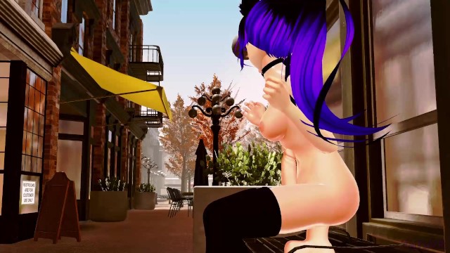 Futanari Slut Rides and Cums on a Dildo on a Public City Bench