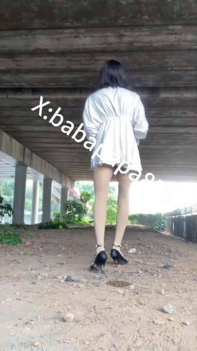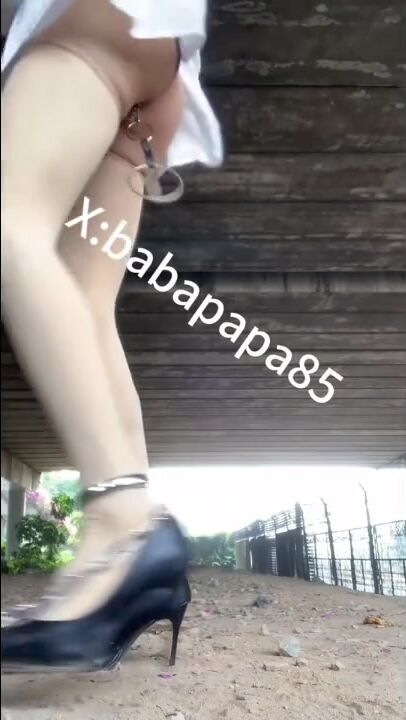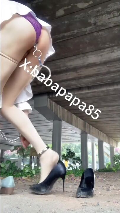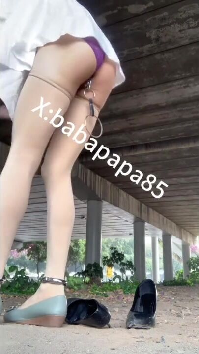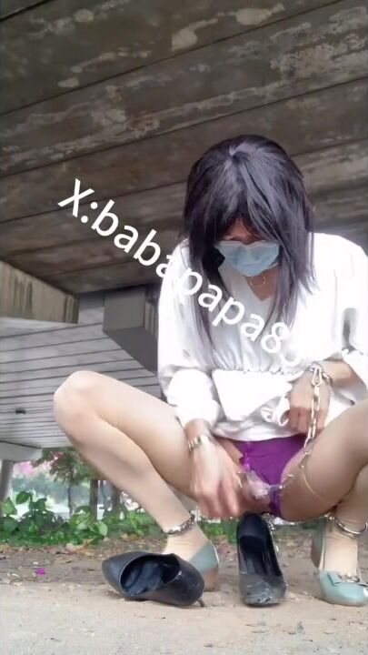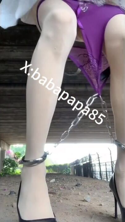 []伪娘戴着手铐脚镣在铁轨旁边露出