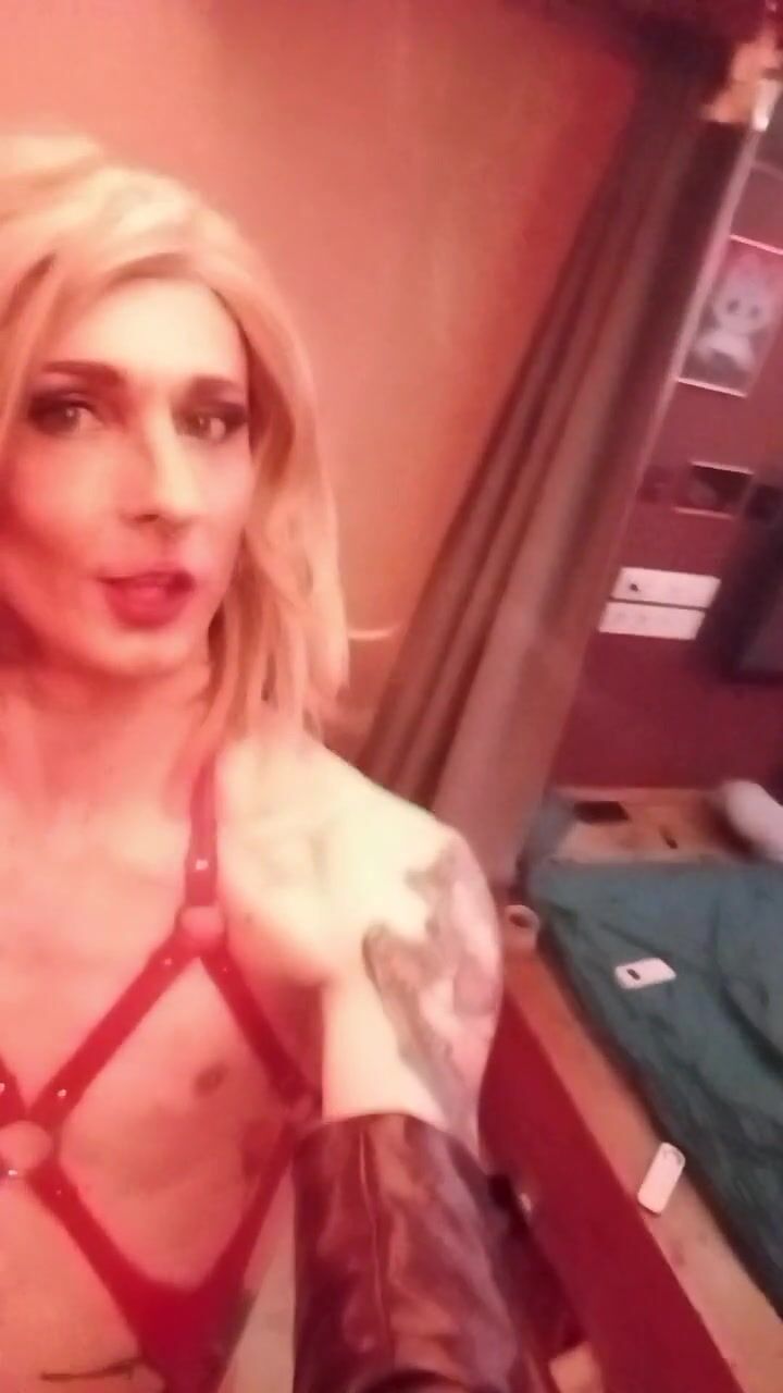 Lola CD Sissy exposing herself in harness and chastity