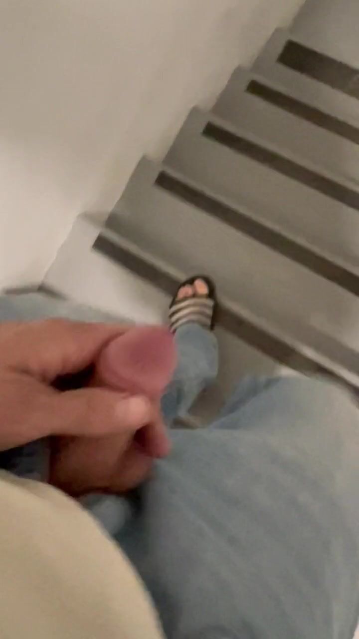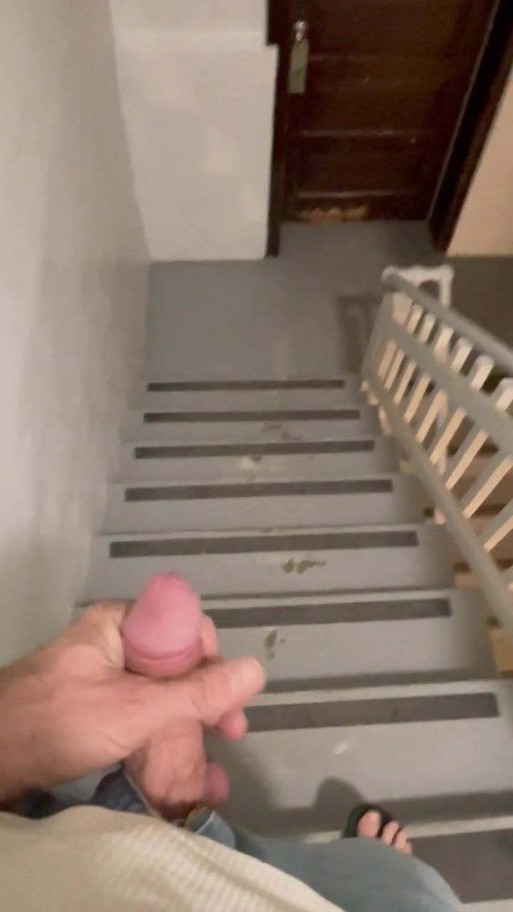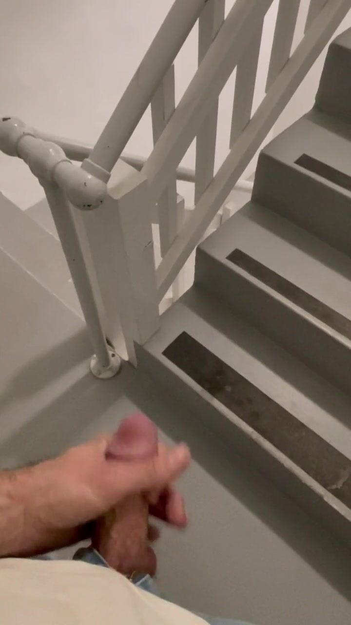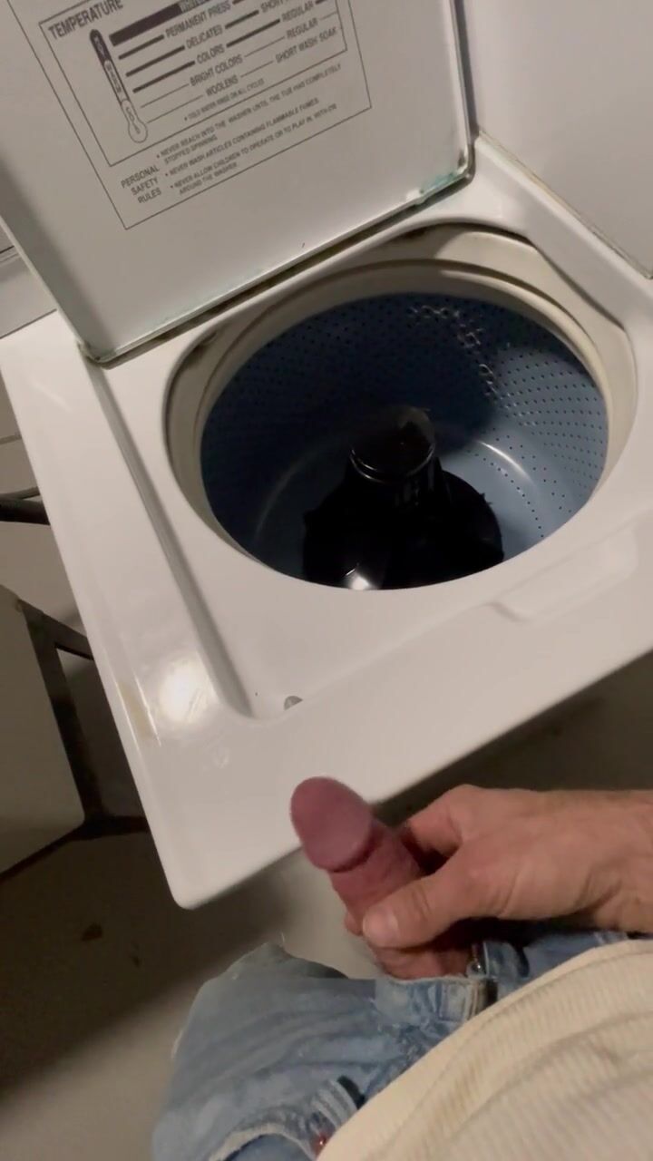 RISKY dick out walk to laundry room KINKLADMPLS on OF to see me strip, wank, and cum