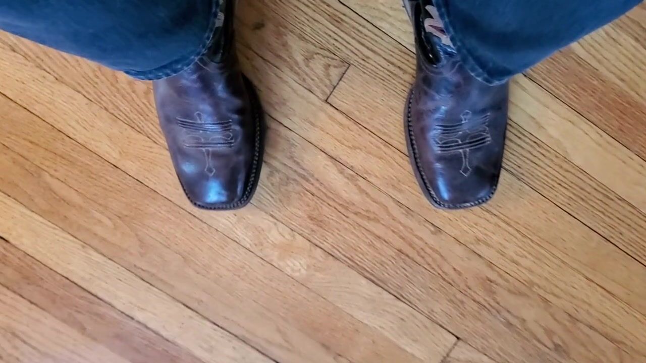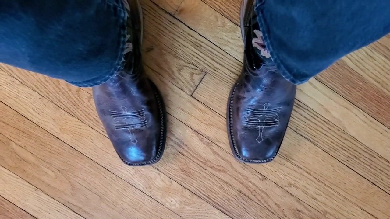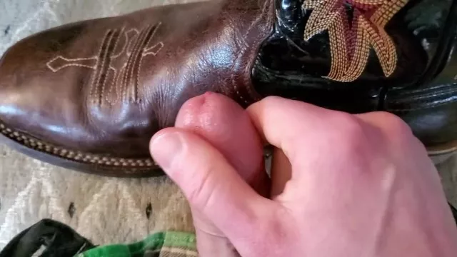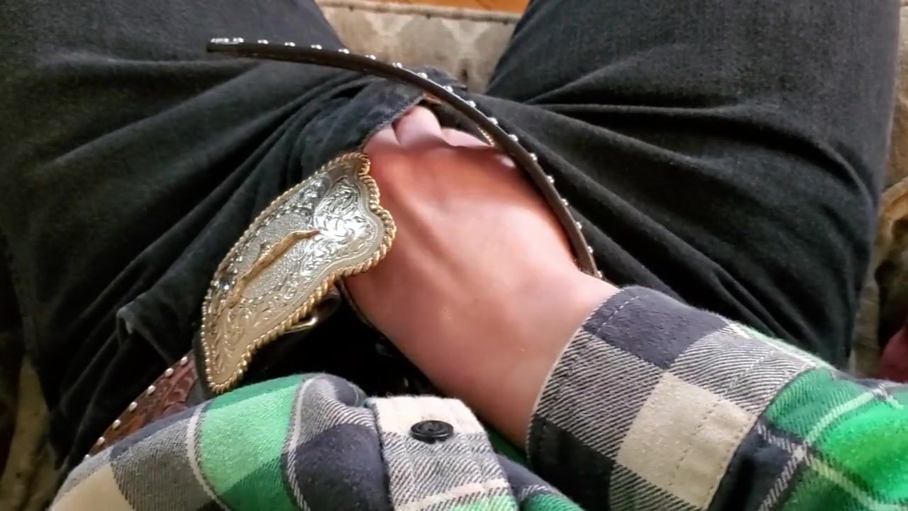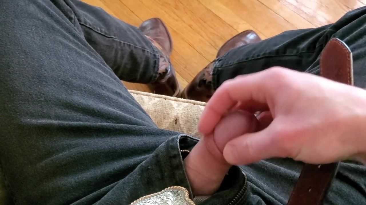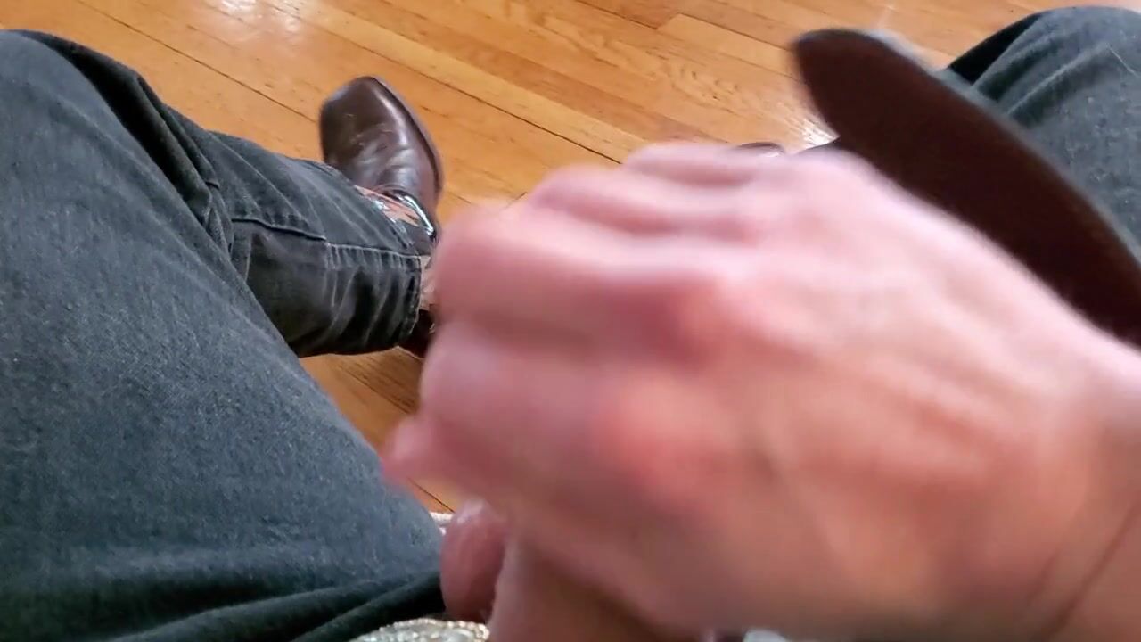 Cowboy cumming on his boots in black Wrangler jeans