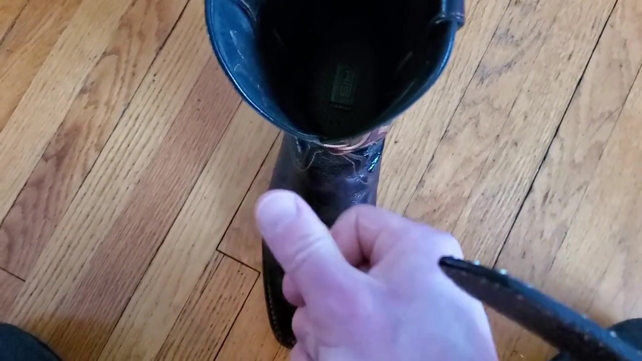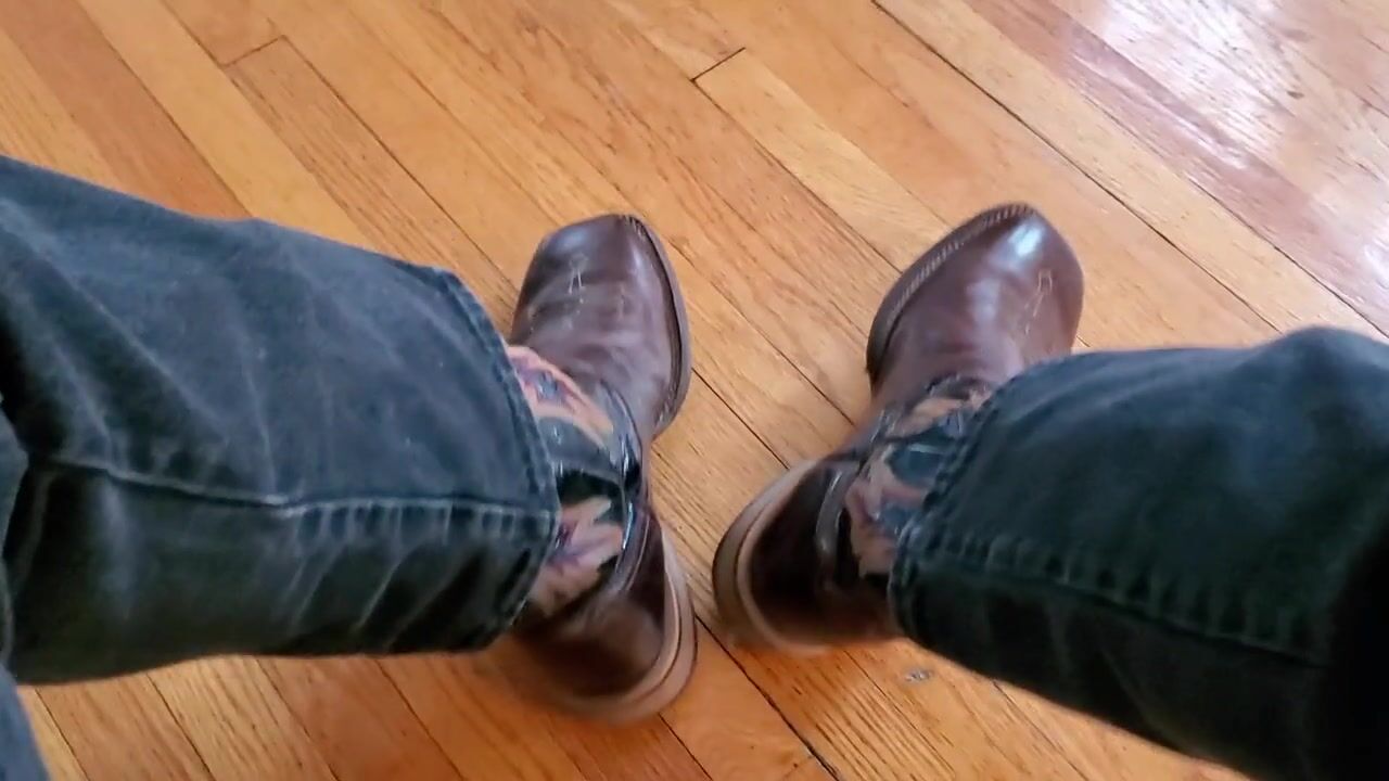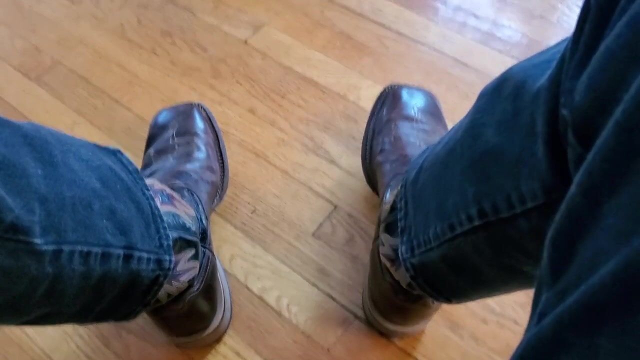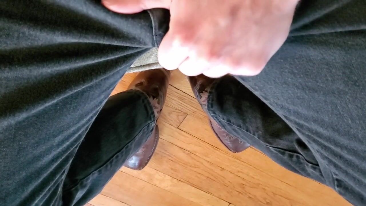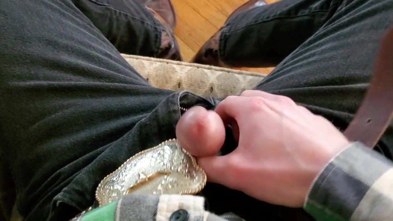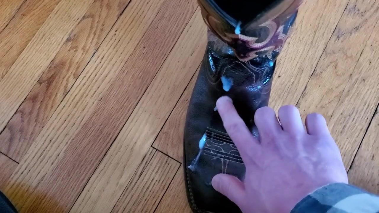 Cowboy cumming on his boots in black Wrangler jeans