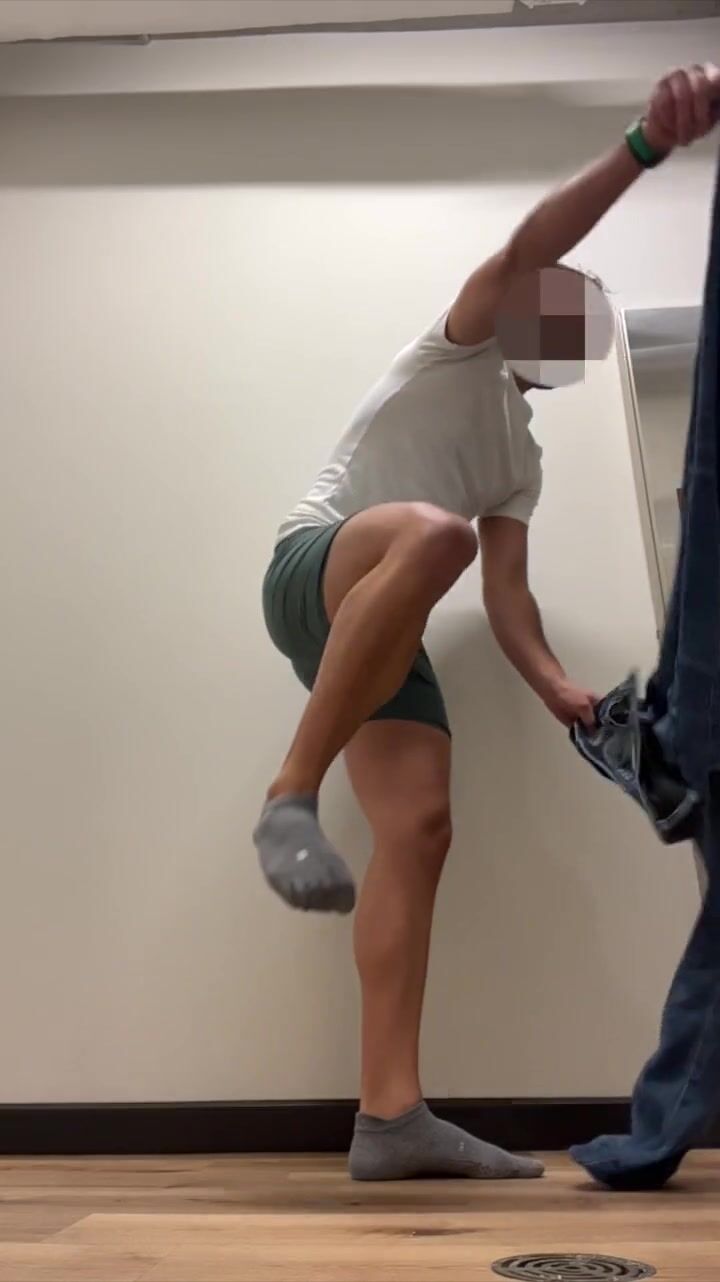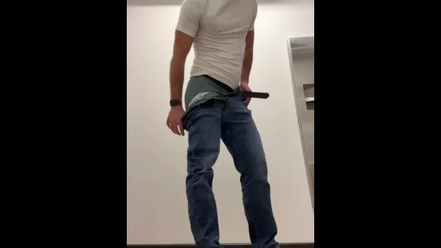 Pissing in a condom and pouring it on my face in public restroom - Slow motion