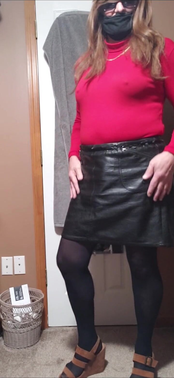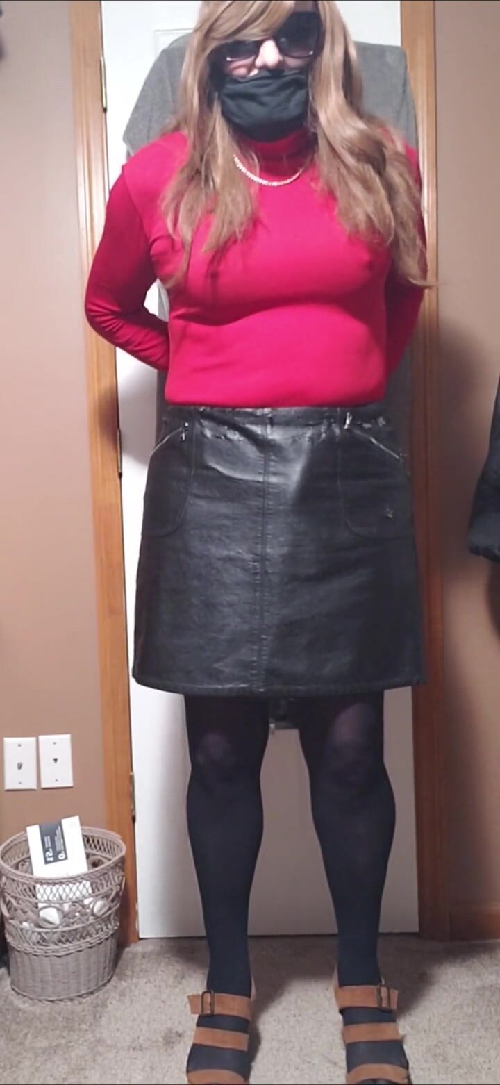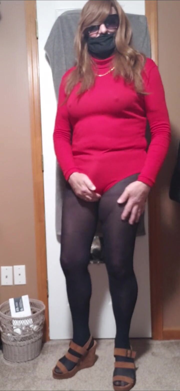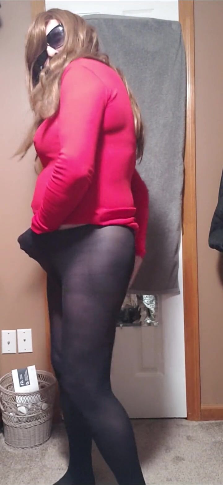 Crossdressed. I masturbate and big cum on my pantyhose.