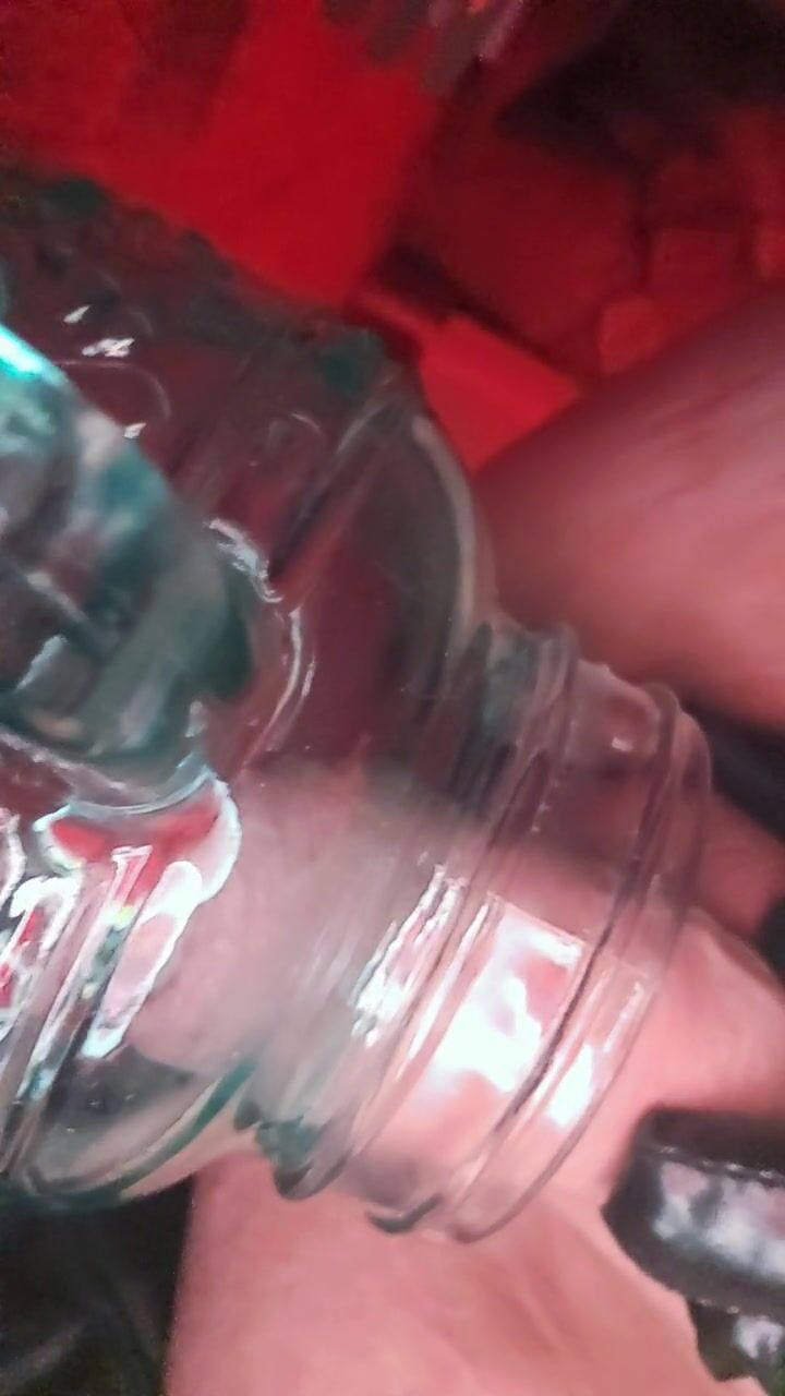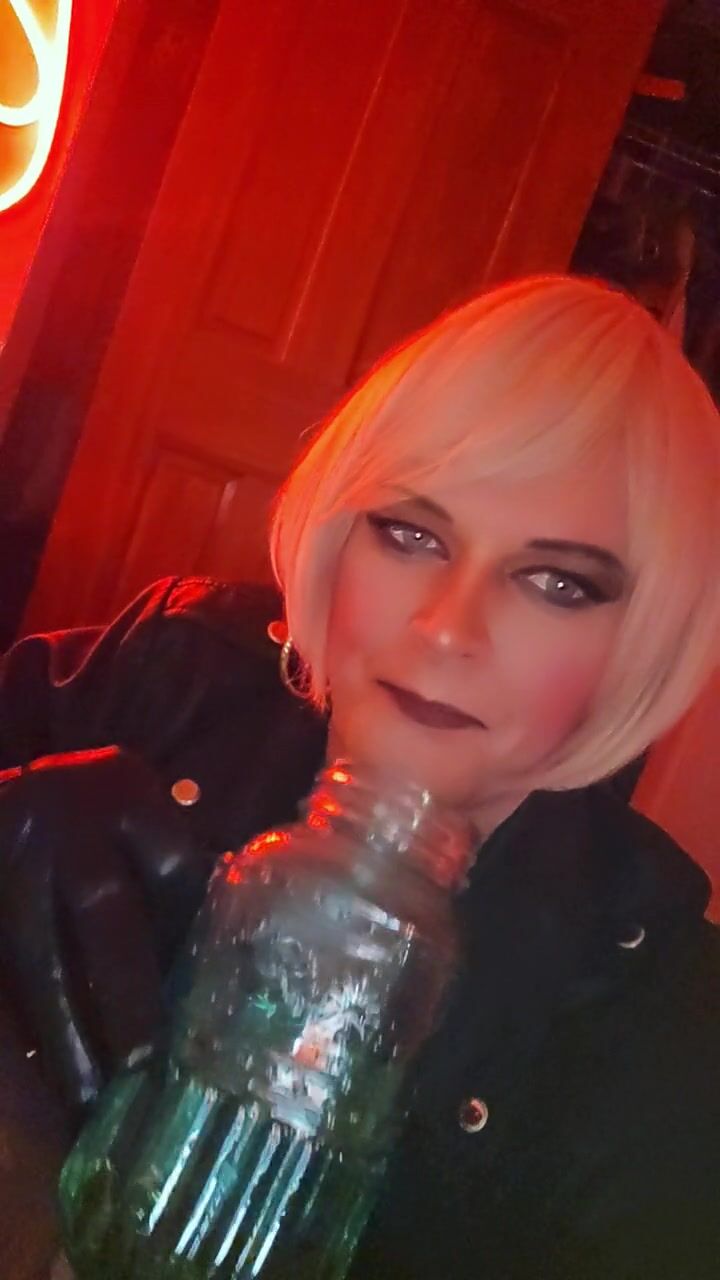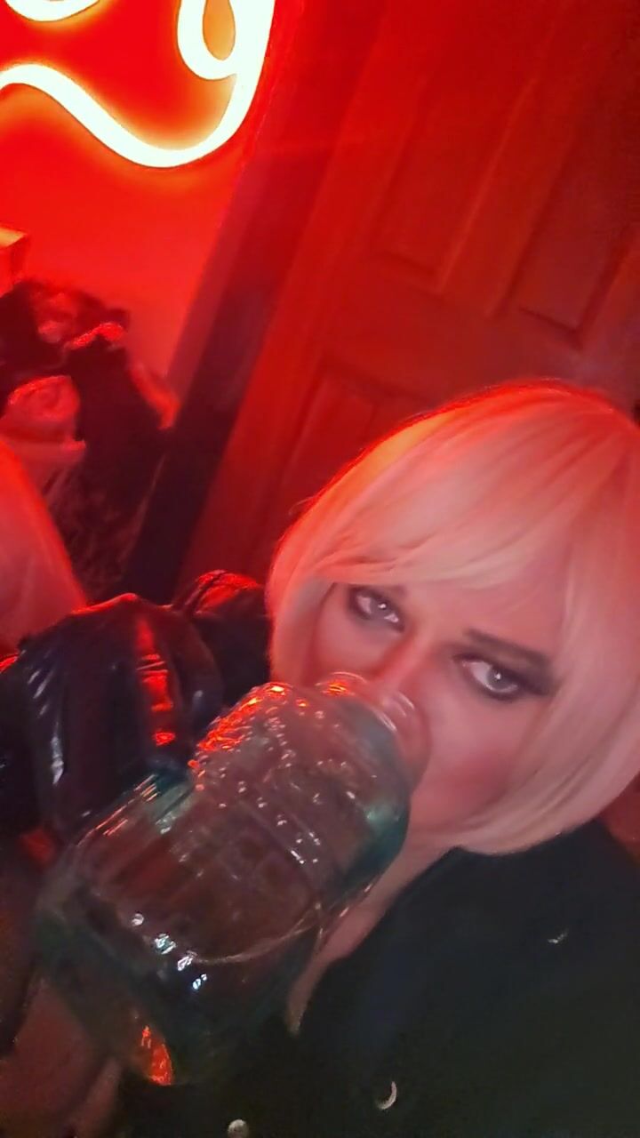 Blonde Trans Goddess in Latex Gloves and Pissing Closeup in Jar & Drinks