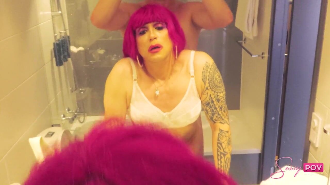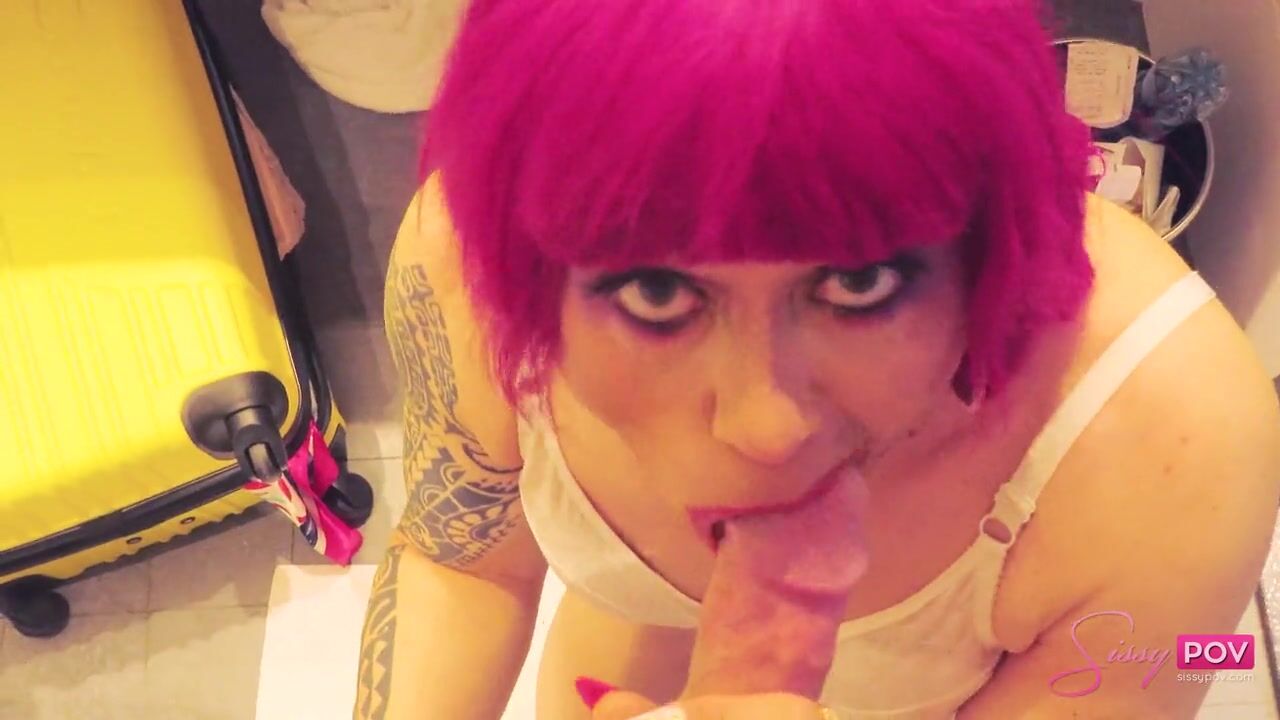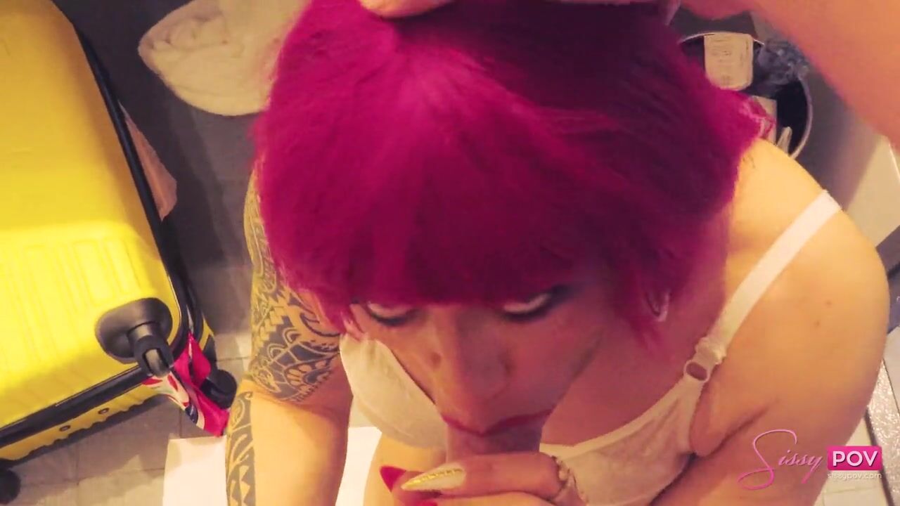 Sexy Trans Shemale Sucks Big Cock and Rides it in Public - Ai Generated